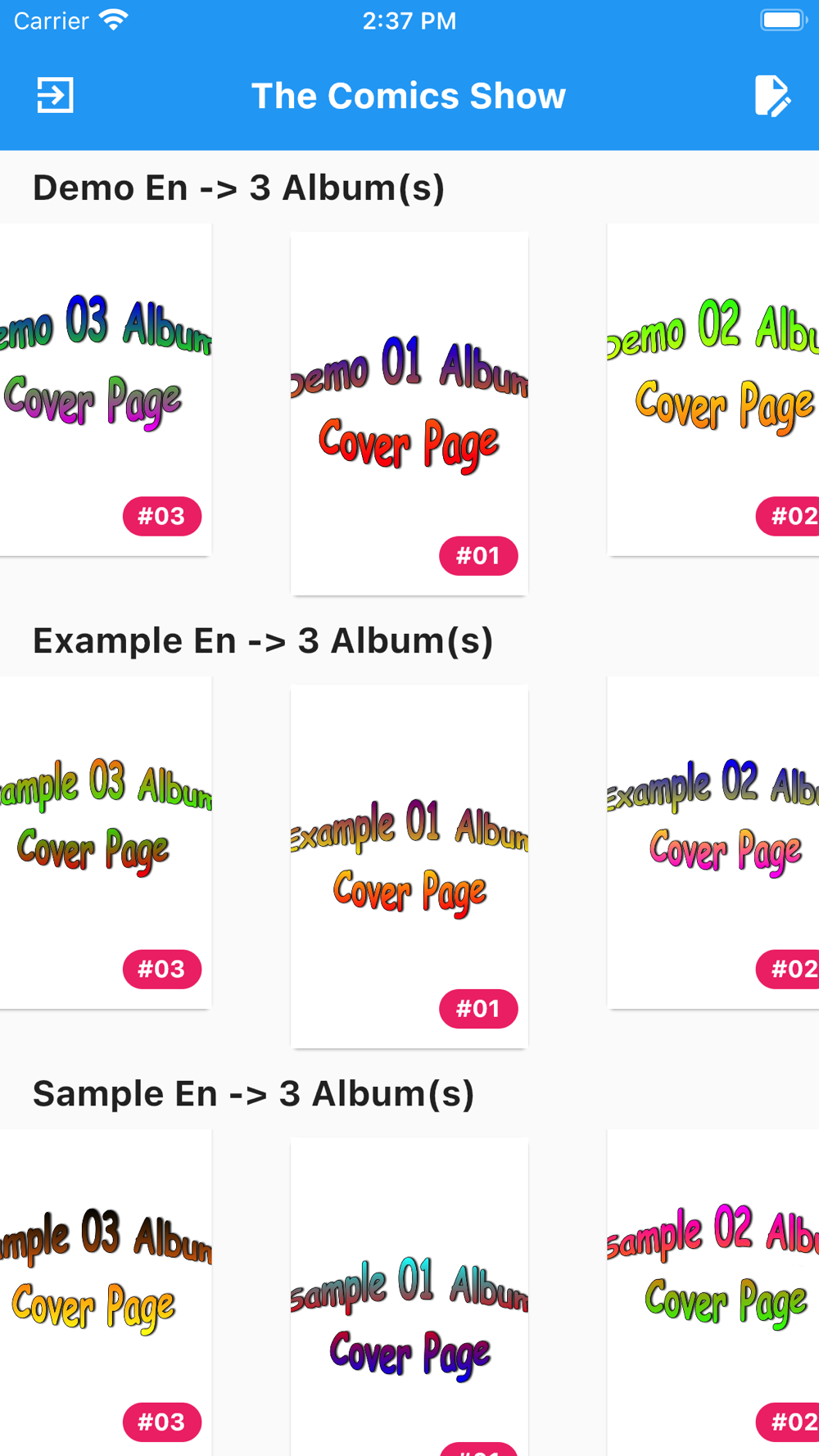 The main purpose of this App is to organize electronic comic books in a readable and management manner. The comics are divided into series, each with set of issues and every issue has several pages. Users can download a single comic issue they own in zip format, e.g. Alix-01_Ar.zip where Alix is the series name, 01 is the issue no, and Ar is the comic language; provided an external url for the file or can upload multiple issues at once to the App document folder through iTunes (Finder in macOS) or any compatible 3rd party software.
