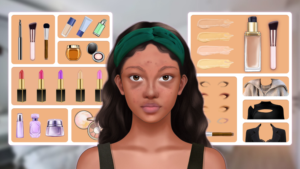 Here comes a new customer,let's refresh her with a bling-bling lip art, an ambilight eye shadow and a perfectly matched hairstyle and outfit!