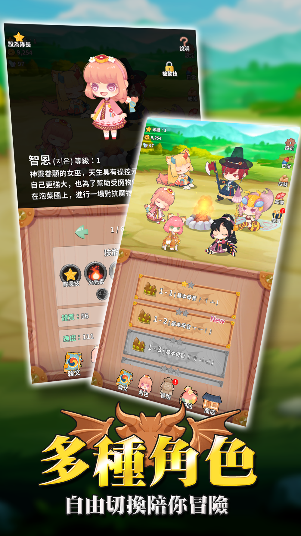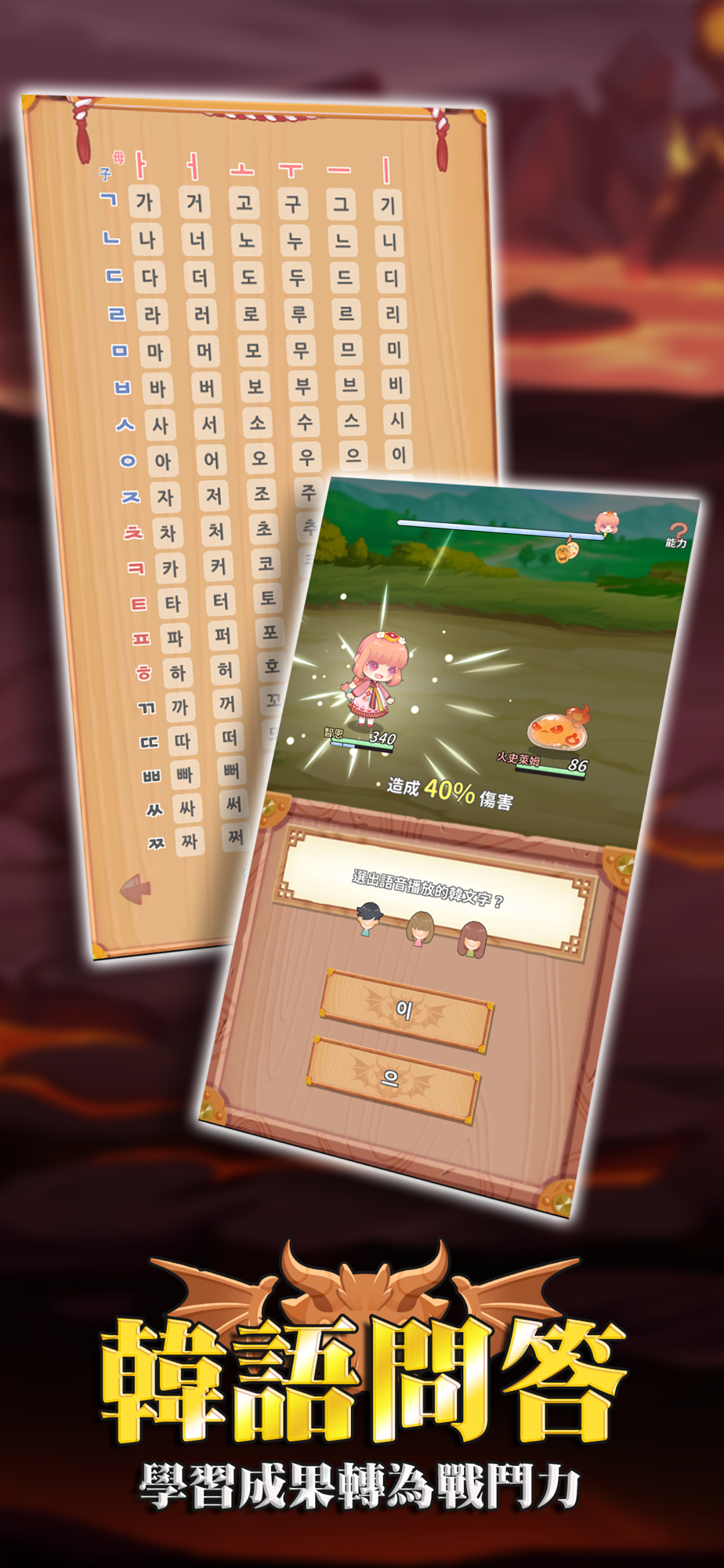 1.以學習韓語40音為目標的輕鬆遊戲。