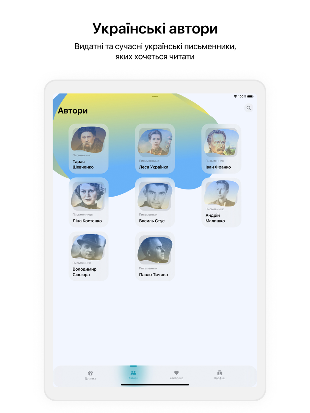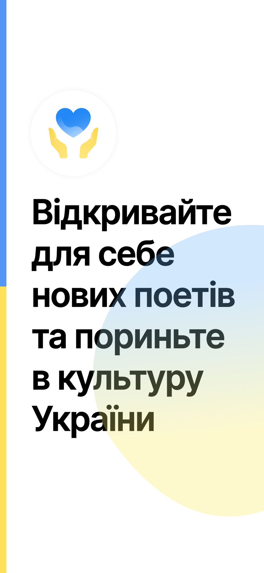 Отримайте доступ до віршів видатних діячів української культури: Тарас Шевченко, Леся Українка, Іван Франко, Павло Тичина, Володимир Сюсюра, Василь Стус, Ліна Костенко, Андрій Малишко та багато інших авторів, які розміщуватимуть твою творчість на мобільній платформі Моя Вкраїна.