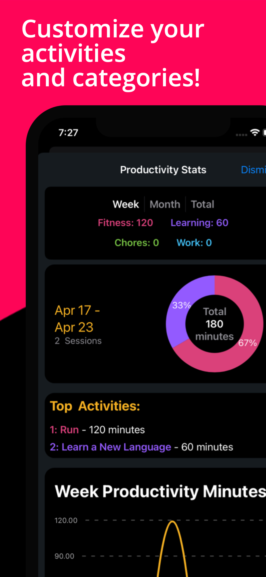 A Productivity Tracker App built to help people live healthy balanced lives. See the productive time you accumlate to reach your goals!