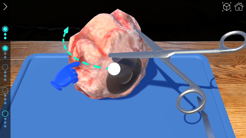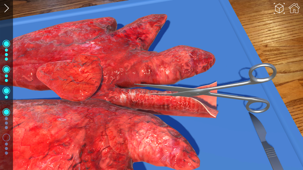 2. [중등] 해부실습 : 본격적인 해부실습이 시작됩니다. 동물보호법에 따라 실재 해부 실습의 대체와 생명존중교육 지향을 목적으로 개발된 콘텐츠로 비록 가상 실습이지만 체험하는 동안 동물 생명의 소중함을 항상 기억하며 해부 대상을 소중하게 다루고 실습에도 진지하게 임하기를 바랍니다. 공간인식 기능으로 스마트 기기만 있으면 가상 해부실습을 체험할 수 있습니다.