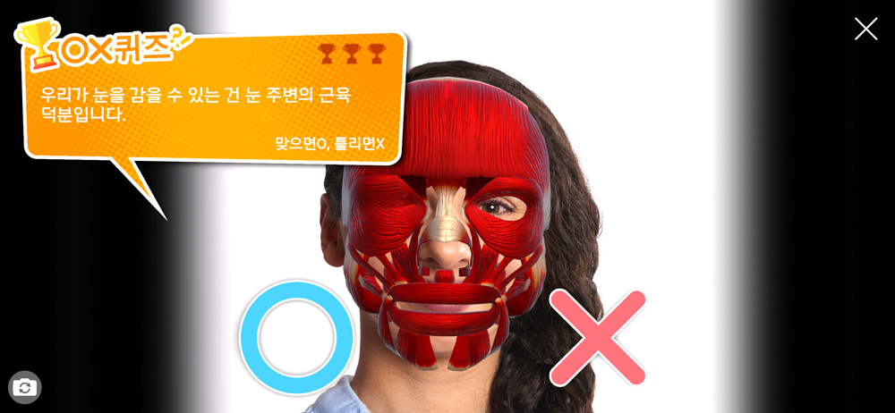 1. [초등] 눈, 코 입 알아보기 : 감각기관이 페이스 트래킹으로 내 얼굴 위에 구현됩니다. 평소 가려져있던 감각기관의 실제 모습을 확인하고 다양한 생물들의 얼굴을 관찰해 보세요. 준비된 퀴즈를 모두 풀어 감각기관 척척박사가 되어보세요.