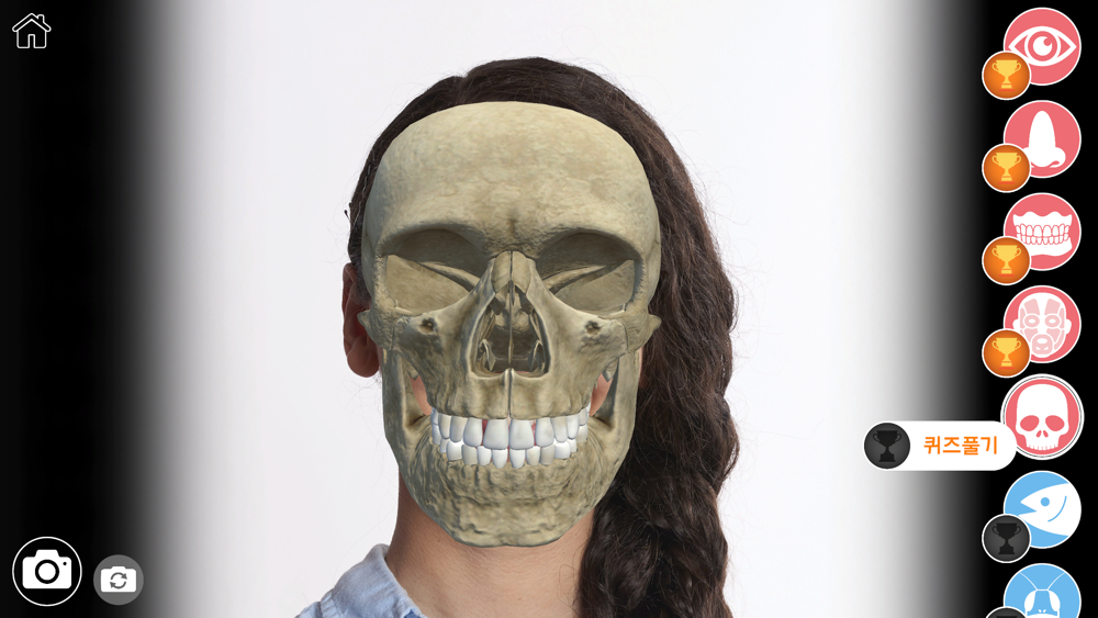 * 후면 카메라를 사용하여 친구, 가족 얼굴 위에 다양한 감각기관과 생물의 얼굴을 증강해 보세요! 사진 촬영 및 저장도 할 수 있어요.