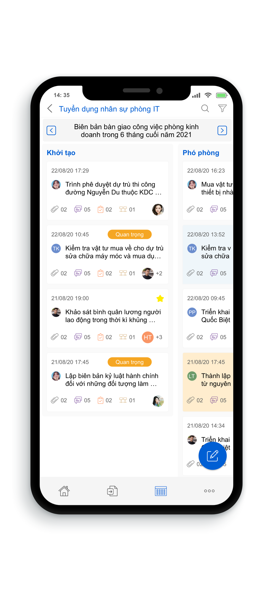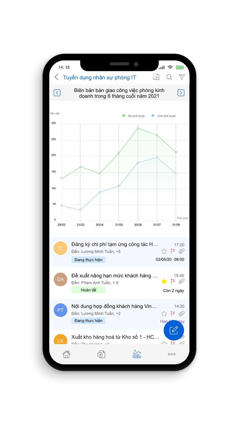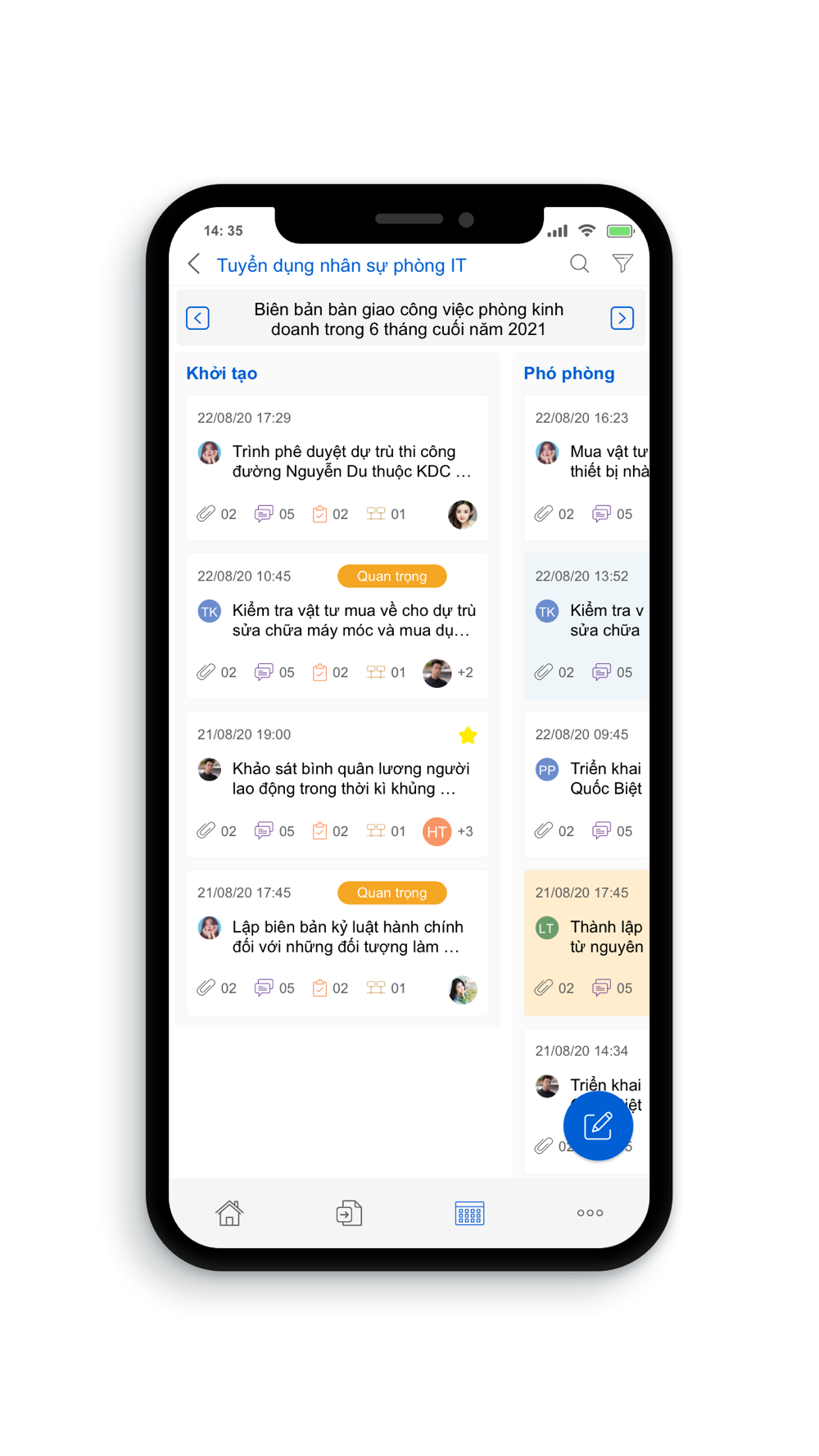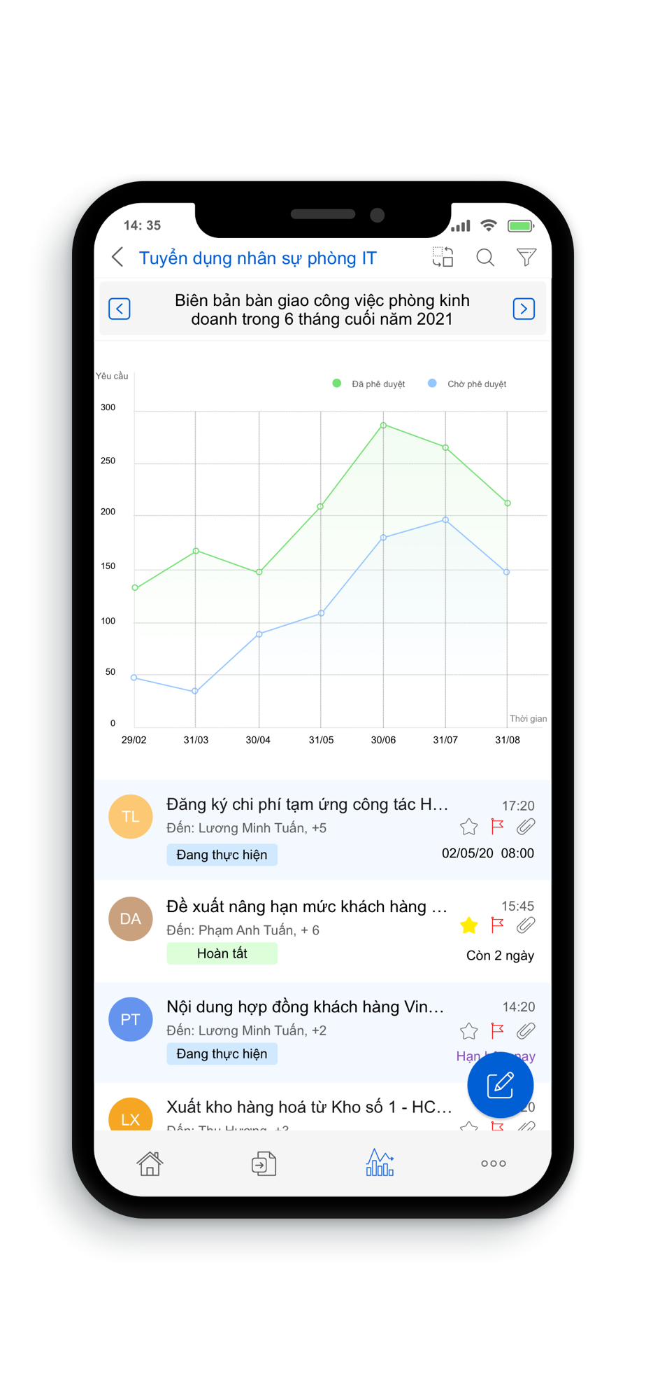 - Tiến độ công việc sẽ được cập nhật tự động lên cấp quản lý.