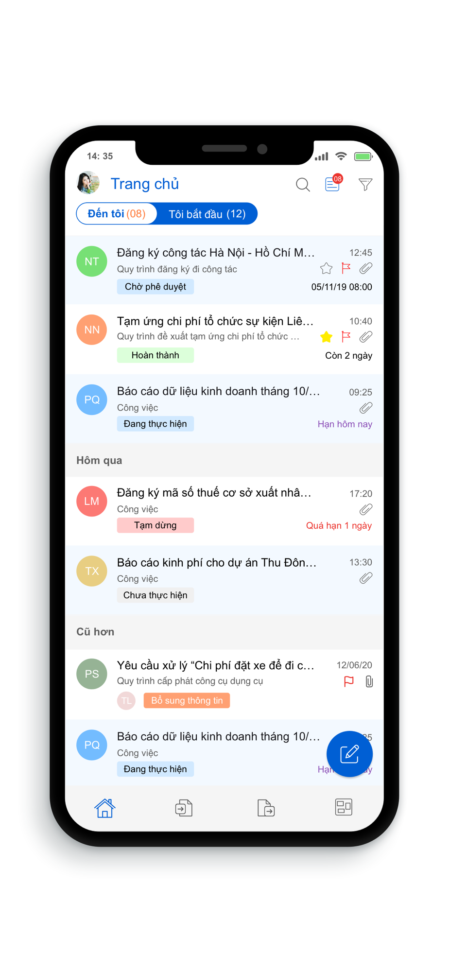 - Khi có một quy trình / công việc cần xử lý người dùng sẽ nhận được thông báo và tiếp nhận công việc một cách trực quan.