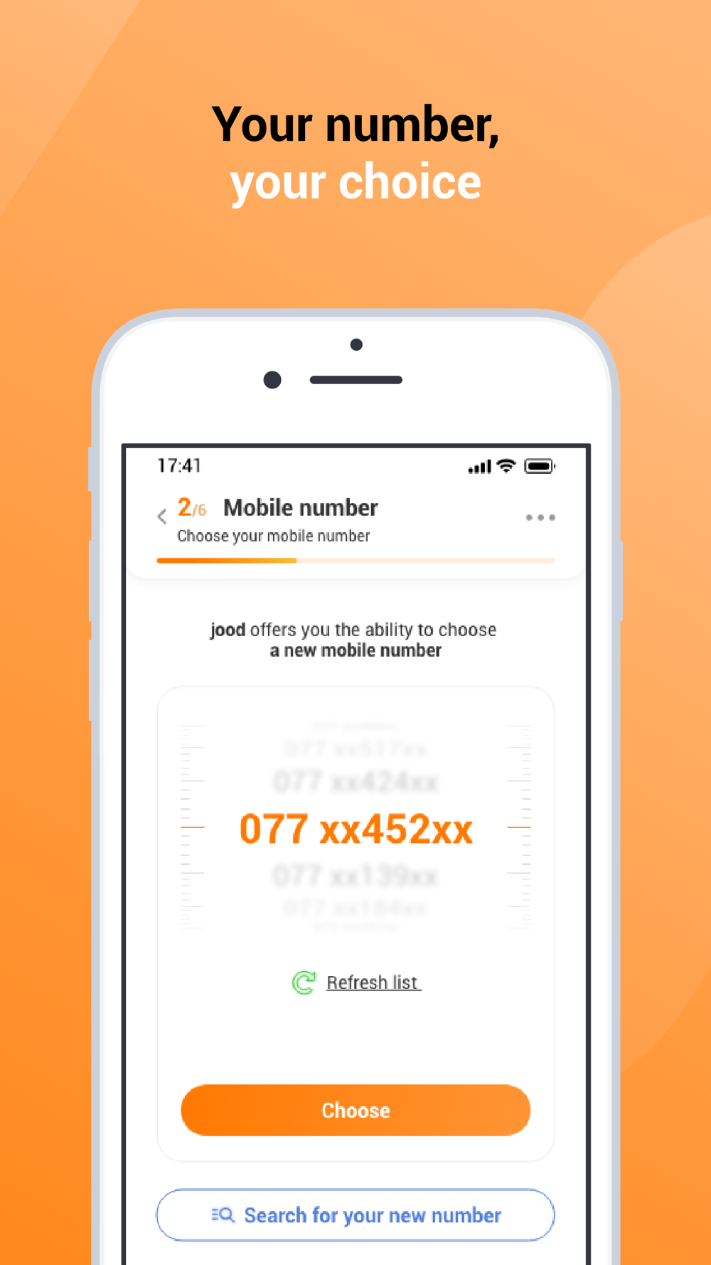The jood Orange app offers you a unique 100% digital experience to manage your prepaid lines with ease. You can now choose the line that suits your needs, your new mobile number from a list of special numbers available in-app, pay and recharge your line online and add more 4G and 5G internet bundles available from Orange Jordan.. Whether you are searching for a new way to purchase the best prepaid lines with attractive features, or lines with eSIM option, make payments online, and get a free delivery or shop our latest mobile devices through Orange.jo eshop, or even get discounts and promotions, you will find it all through Orange Jordan app.