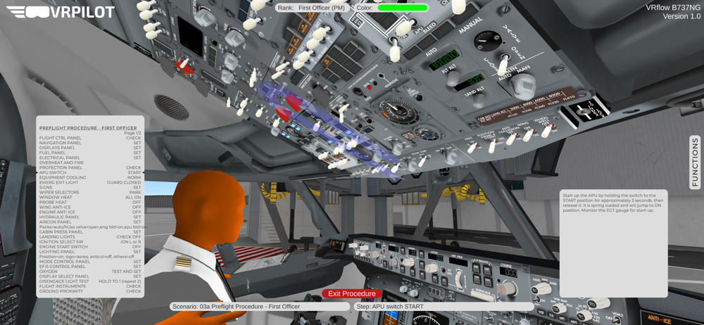 Boost your learning rate with VRflow B737NG, an advanced, interactive cockpit procedure trainer for the B737 NG. Get ready for your type rating, sim check, MCC course or your next flight with this strong learning tool, build specifically for efficient cockpit procedure training.