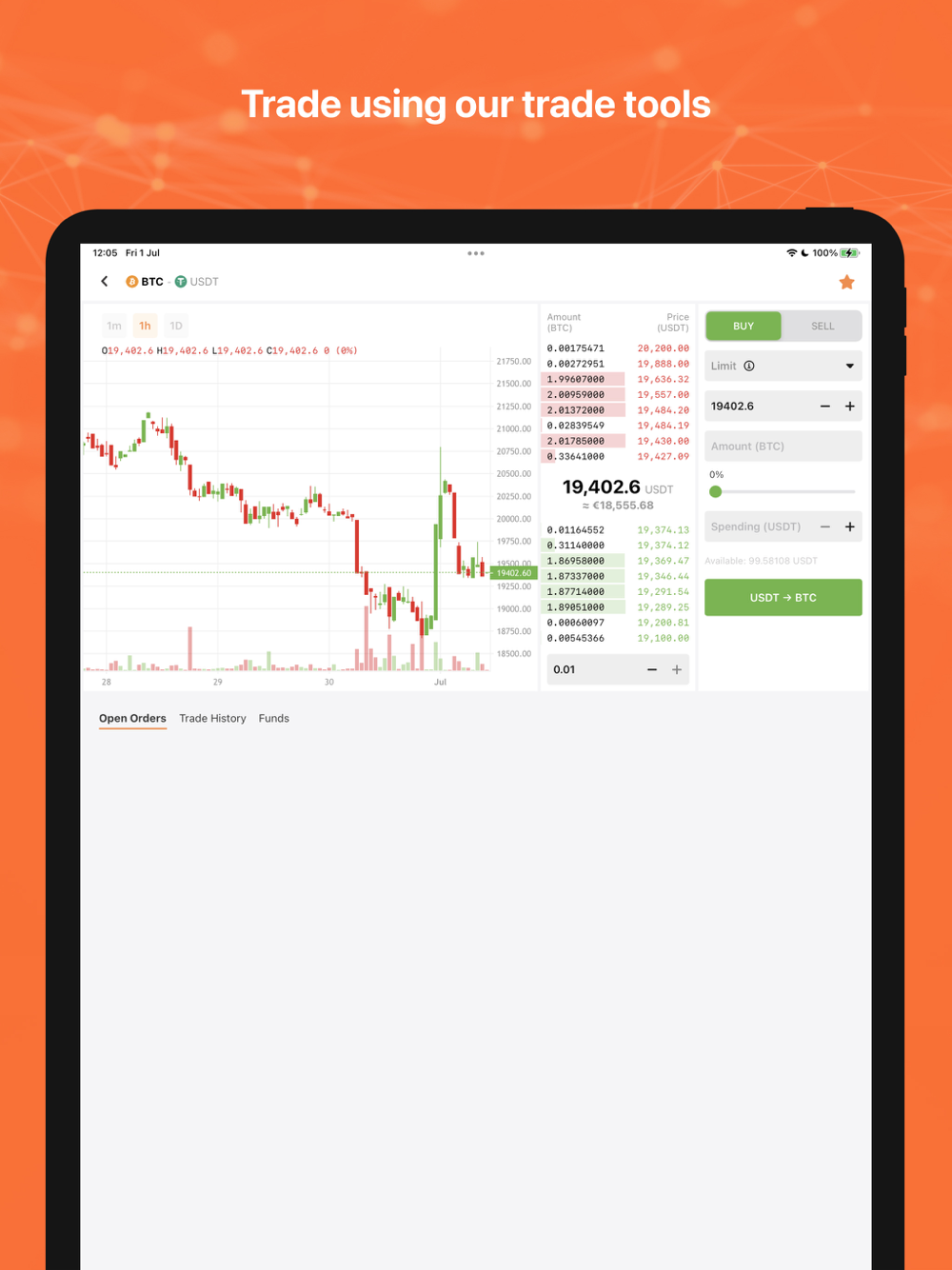 Trade your favorite cryptocurrencies pairs, securely store your funds in your wallet, buy & sell Bitcoin with credit card & bank transfer, and follow your stop loss, trailing and other advanced order types no matter where you are.