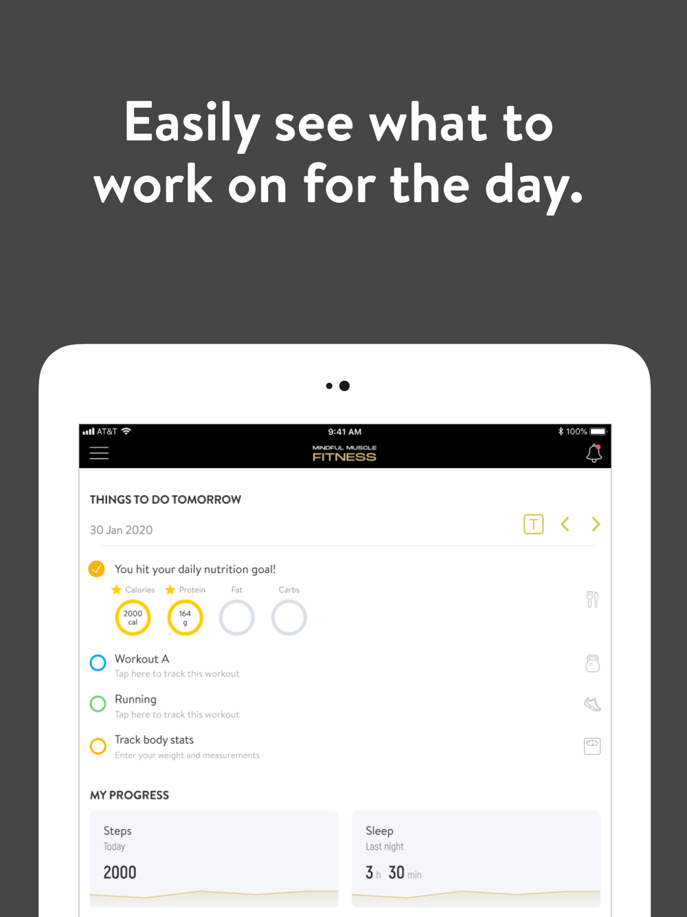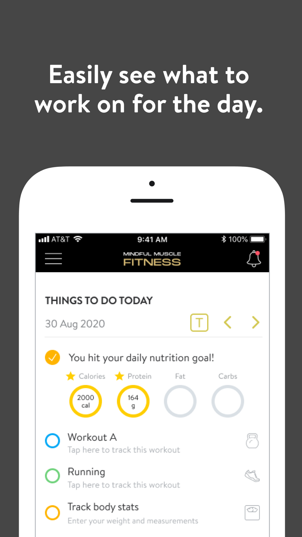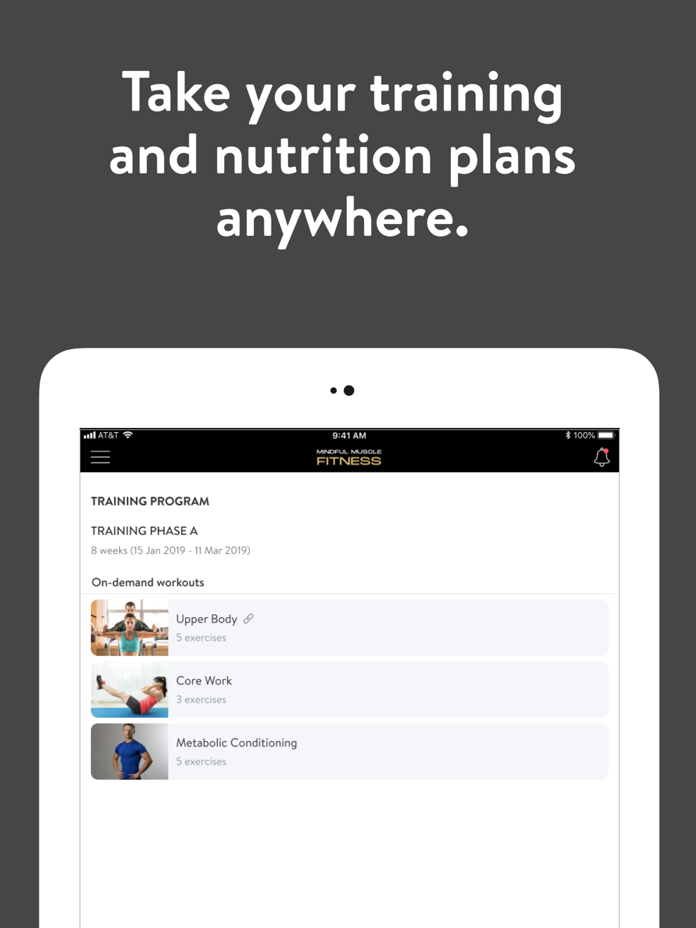 With the Mindful Muscle Fitness App, you can start tracking your workouts and meals, measuring results, access guided meditations and yoga, and achieving your fitness goals, all with the help of your personal trainer.
