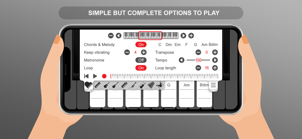 - Play or choose from pre-made tunes and repeat with Live Loops