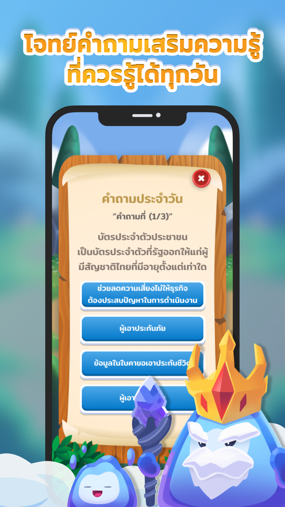 เกมที่จะพาเราเข้าสู่โลกแห่งจินตนาการ ผสมผสานเหตุการณ์เสมือนจริง ให้เราได้ลุ้นคะแนน เก็บรางวัล เอาชนะเหล่าศัตรูผู้นำพาโชคไม่ดีมาสู่ตัวเรา ไม่ว่าจะเป็นภัยจากโรคภัยไข้เจ็บ จากไฟไหม้ จากอุบัติเหตุต่าง ๆ หรือ ภัยธรรมชาติ เป็นต้น แล้ว อะไรหล่ะ? ที่จะช่วยปกป้อง ลดผลกระทบให้กับเราได้? ซึ่งผู้เล่นจะได้สนุกไปพร้อมกับการเรียนรู้ ผ่านการสอดแทรกความรู้ด้านการประกันภัย ผู้เล่นจะเข้าใจทั้งประโยชน์ และข้อดีของการประกันภัย จะสามารถเลือก “ผู้พิทักษ์ประกันภัย” แบบที่เหมาะสมกับตัวเราได้ดีที่สุด