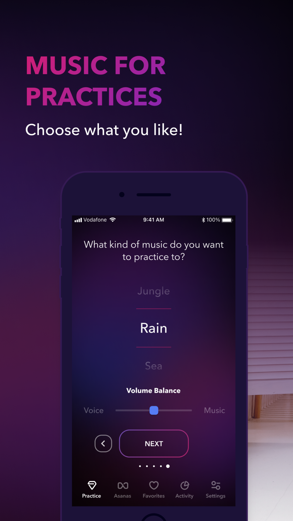 Practicing to music is a pleasure! Choose the music tracks that will accompany you until the end of your practice.