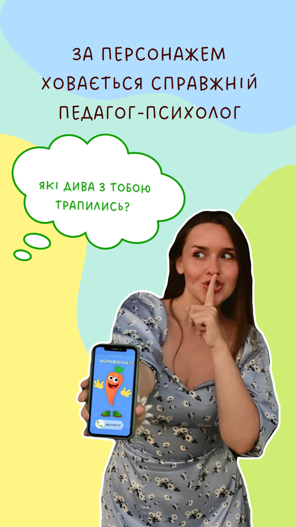 Любі дорослі, дуже важливо:малеча не повинна знати, що телефонує доросла людина. Ми прагнемо зберегти атмосферу чарівності персонажу, з яким спілкується дитина)