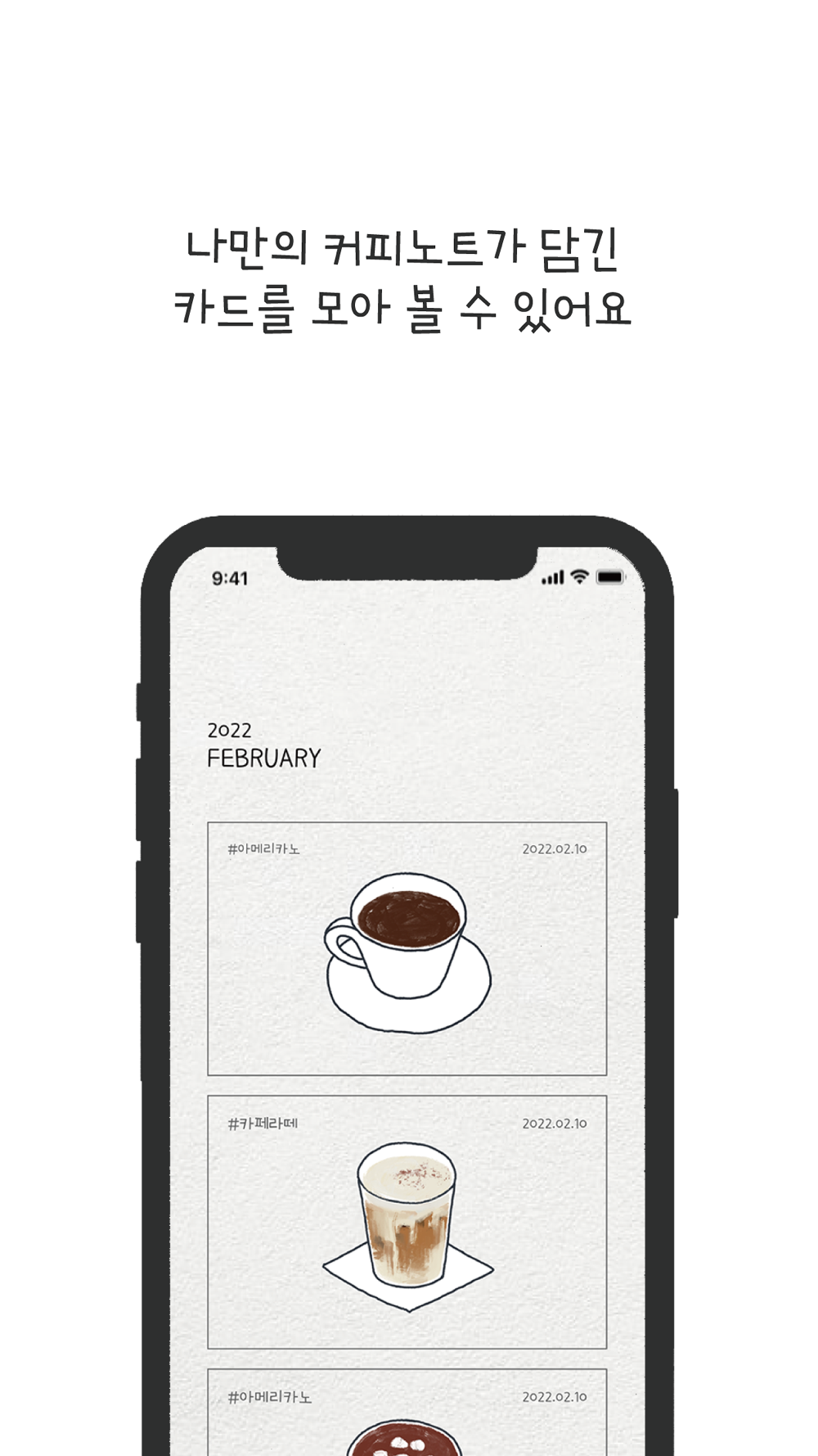 - 손그림 일러스트로 오늘의 커피를 기록해요.