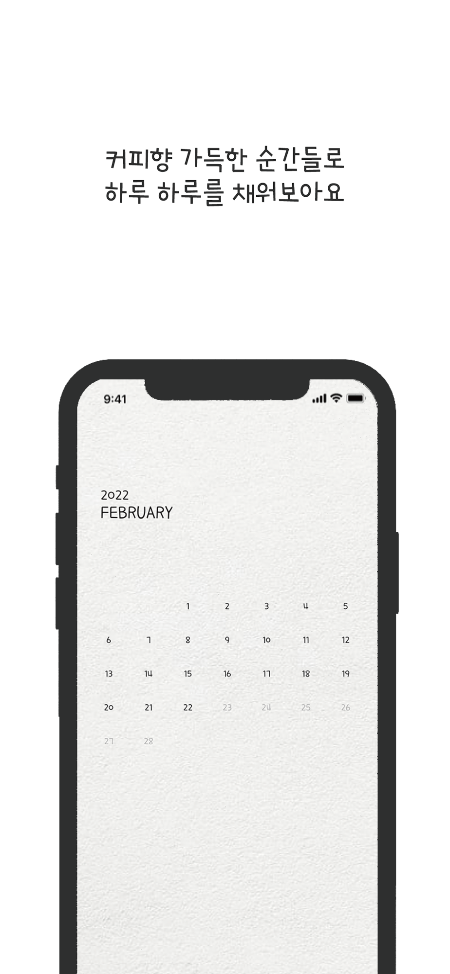 - 커피향 가득한 순간들로 달력을 채워보아요.