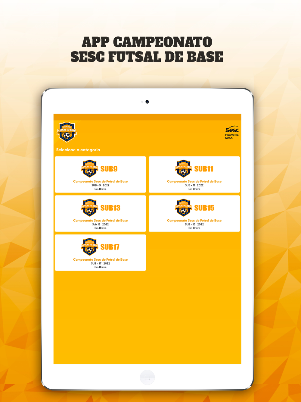 Baixe já em seu Smartphone o App Oficial e acompanhe tudo que rola no Campeonato SESC Futsal de Base!