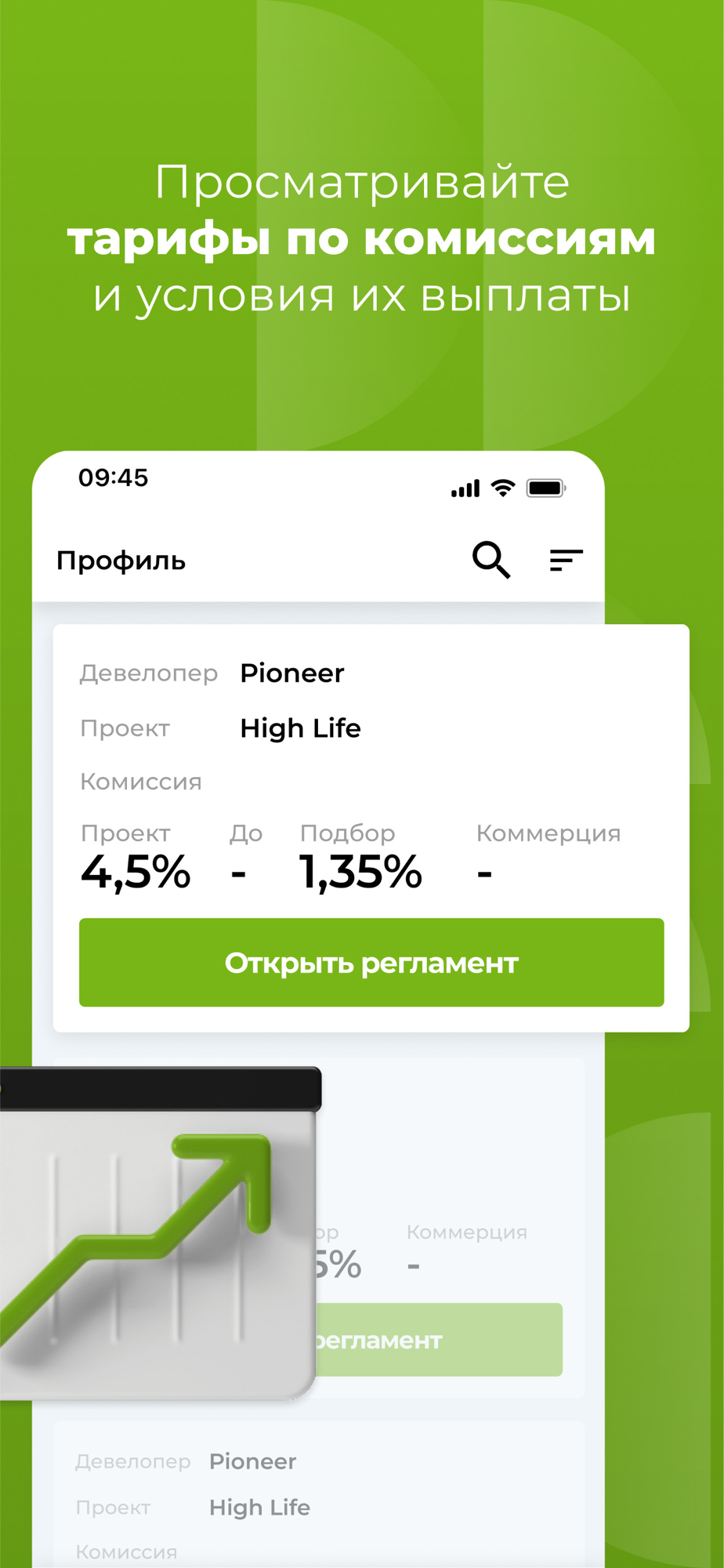 - Каталог тарифов по каждому из проектов, а также возможность ознакомиться с комиссиями и условиями по их выплате агенту;