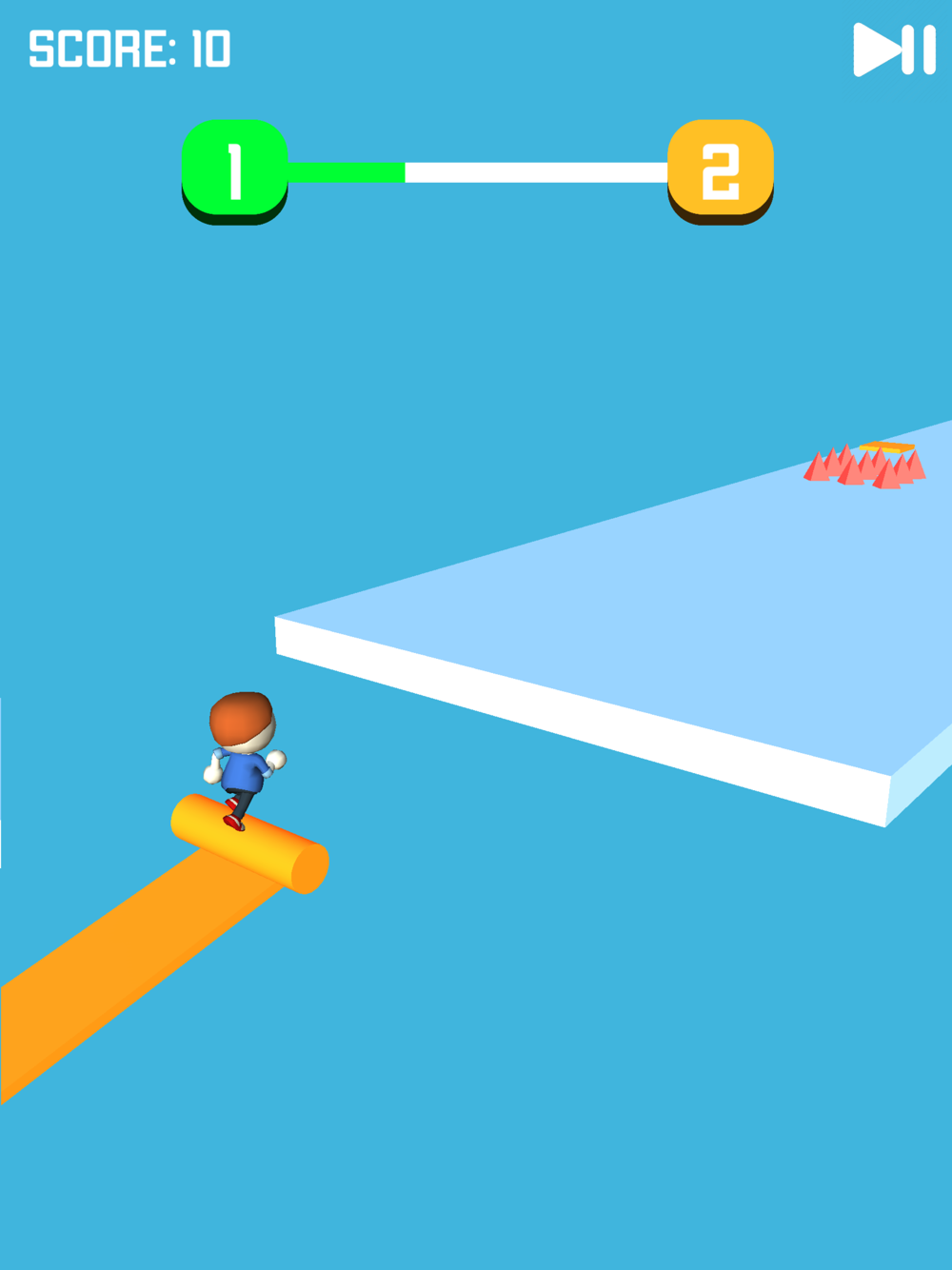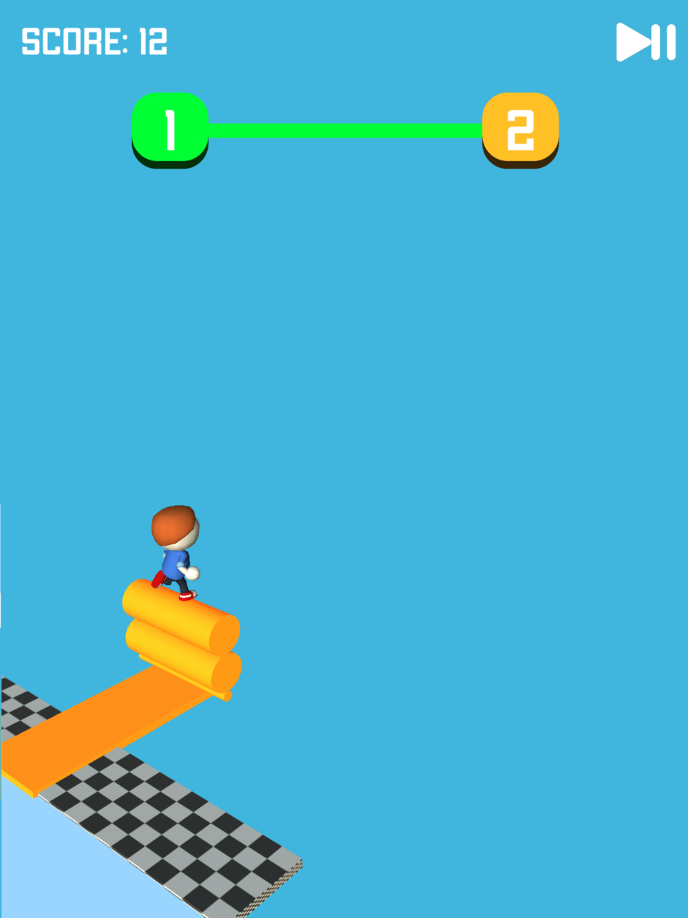 Collect materials that have fallen on the floor, and use them to reach the goal beyond the obstacles.