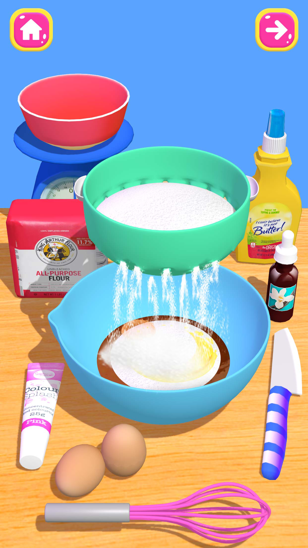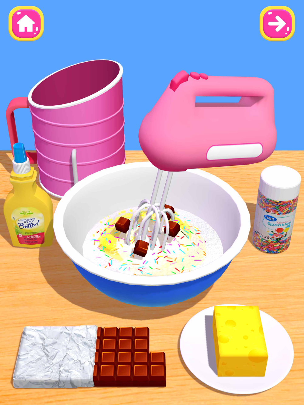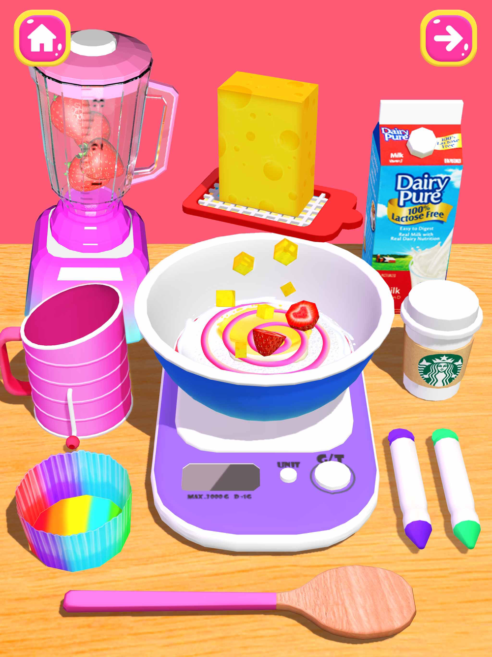 - Make the cake step by step according to the gesture prompts, arrow prompts in the game
