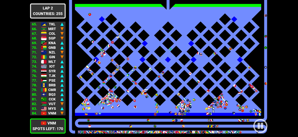 The remake of my World Marble Race series. Select a country and watch it race against other countries, will your marble survive and win the gold medal?