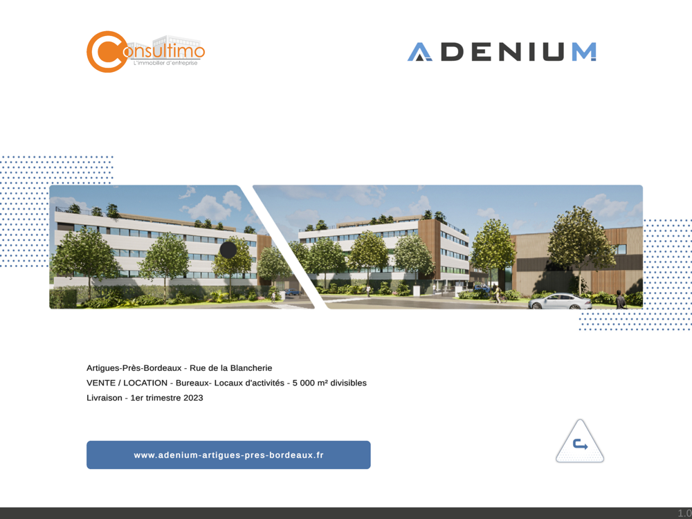 Situé à Artigues Près Bordeaux, le programme Adenium proposera en 2023 des bureaux, et des locaux d’activités. 5 000 m² divisibles seront proposés. Accessible par la sortie 25, ce programme est idéalement situé. L’App RA vous invite à voyager et découvrir ce superbe programme.