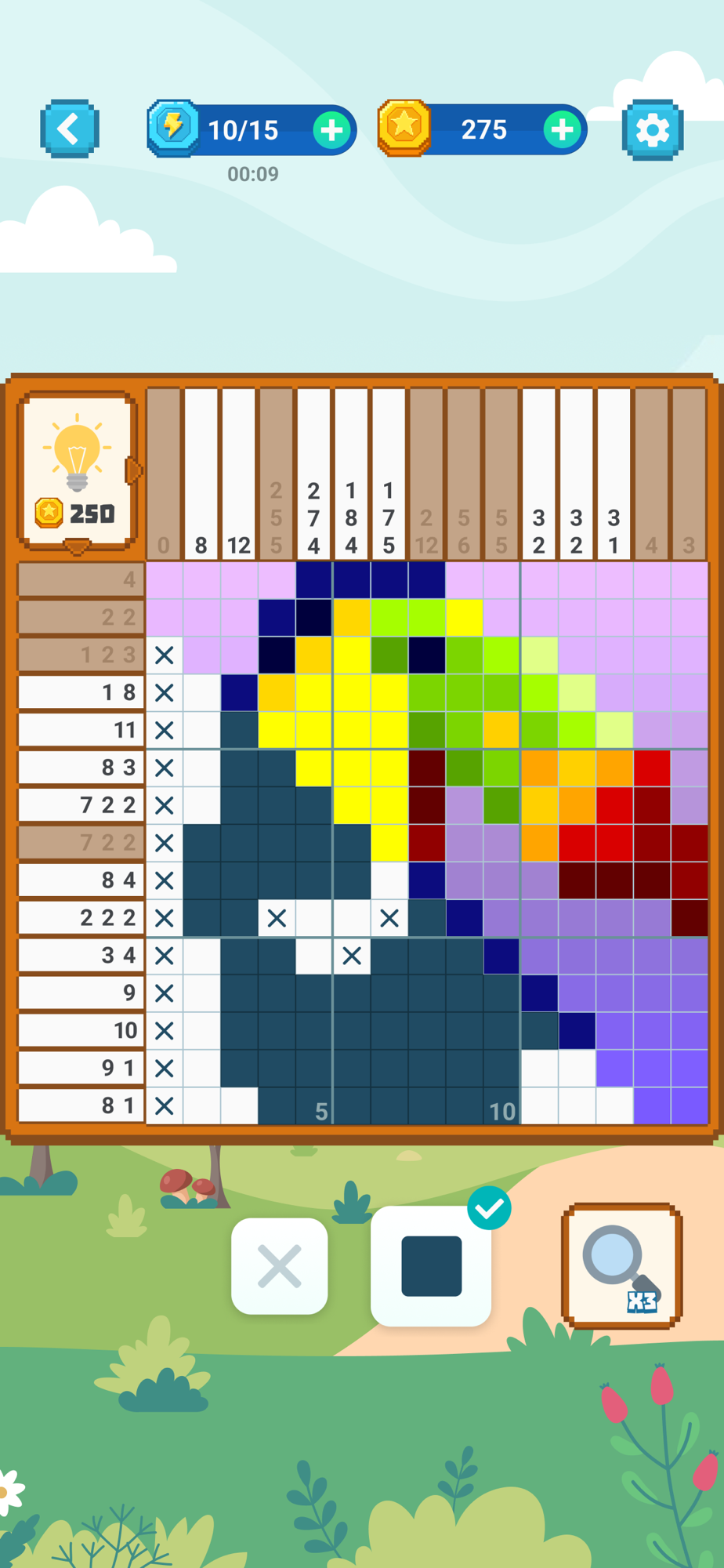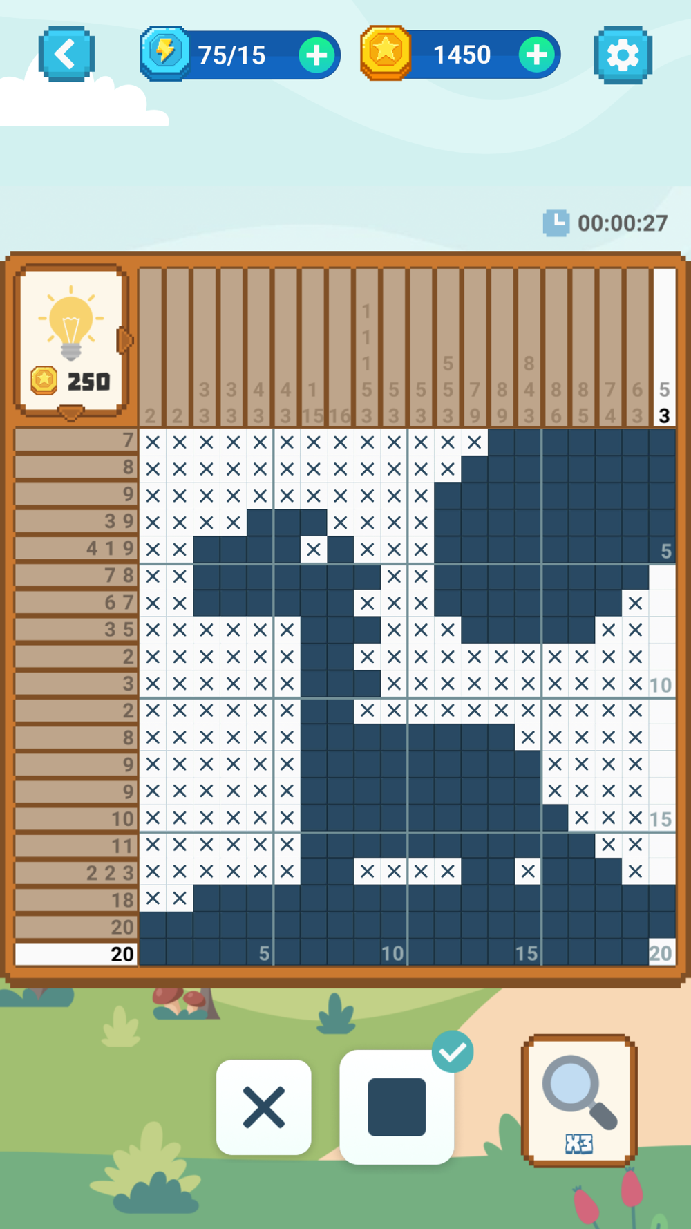 —If you have figured out that the square should not be filled, switch mode and mark it with an X