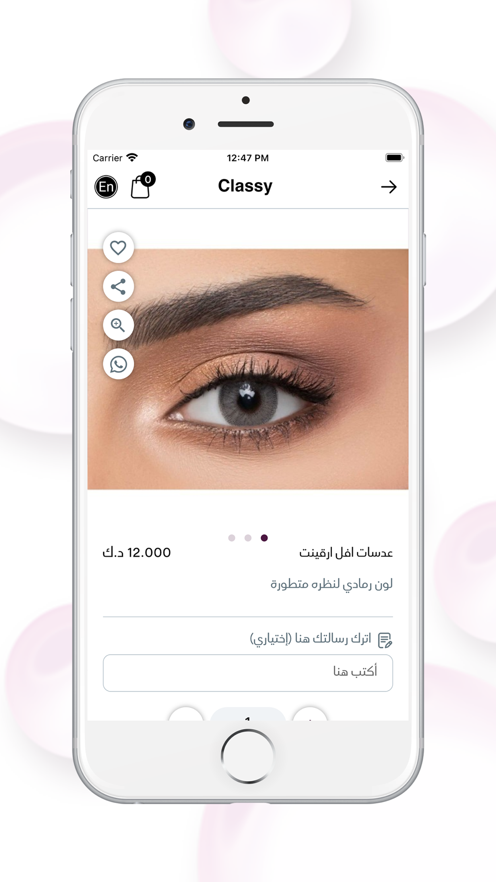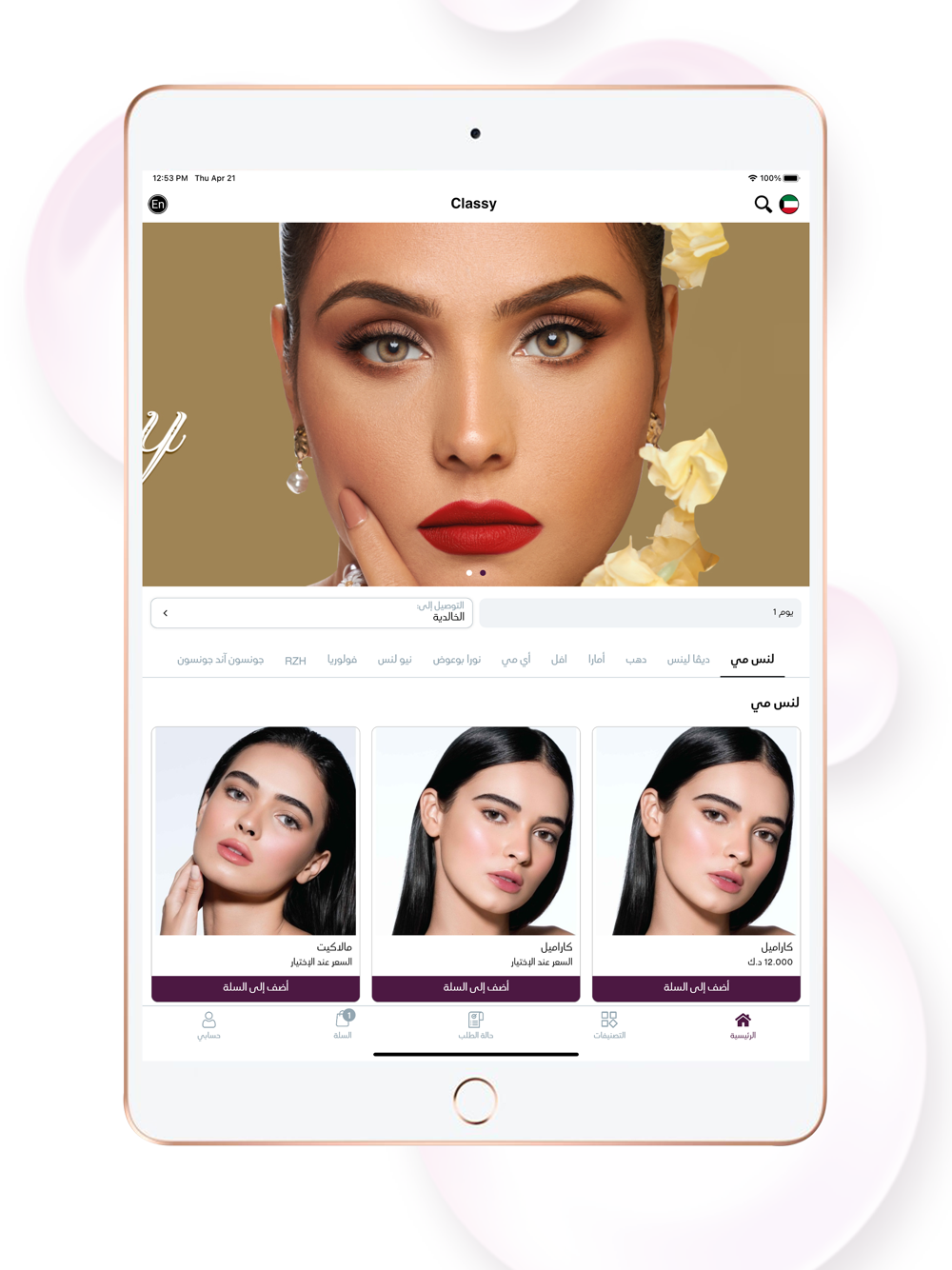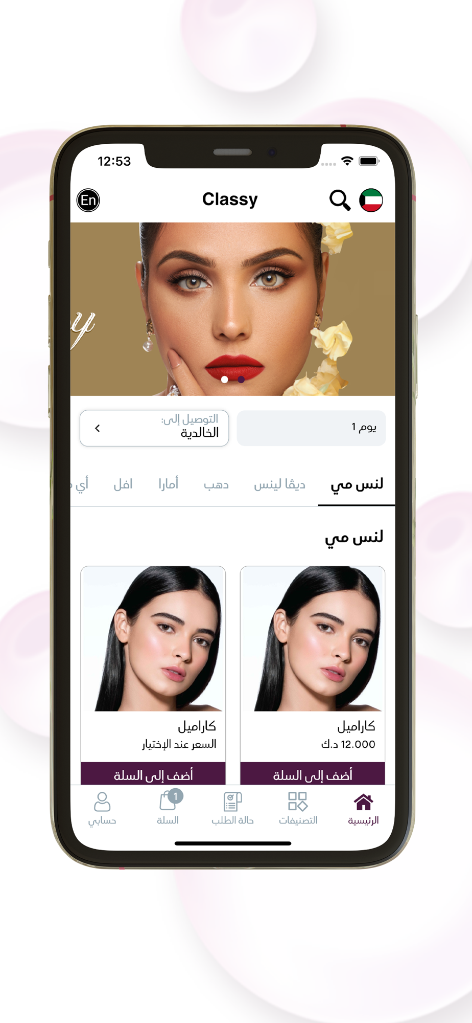 Classy application is a specialized application in selling all beauty products and lenses. To order from the app: open the application, then click on the suitable category, then simply start adding the product you want to your cart. Finish the process by filling the wanted information to have your order.