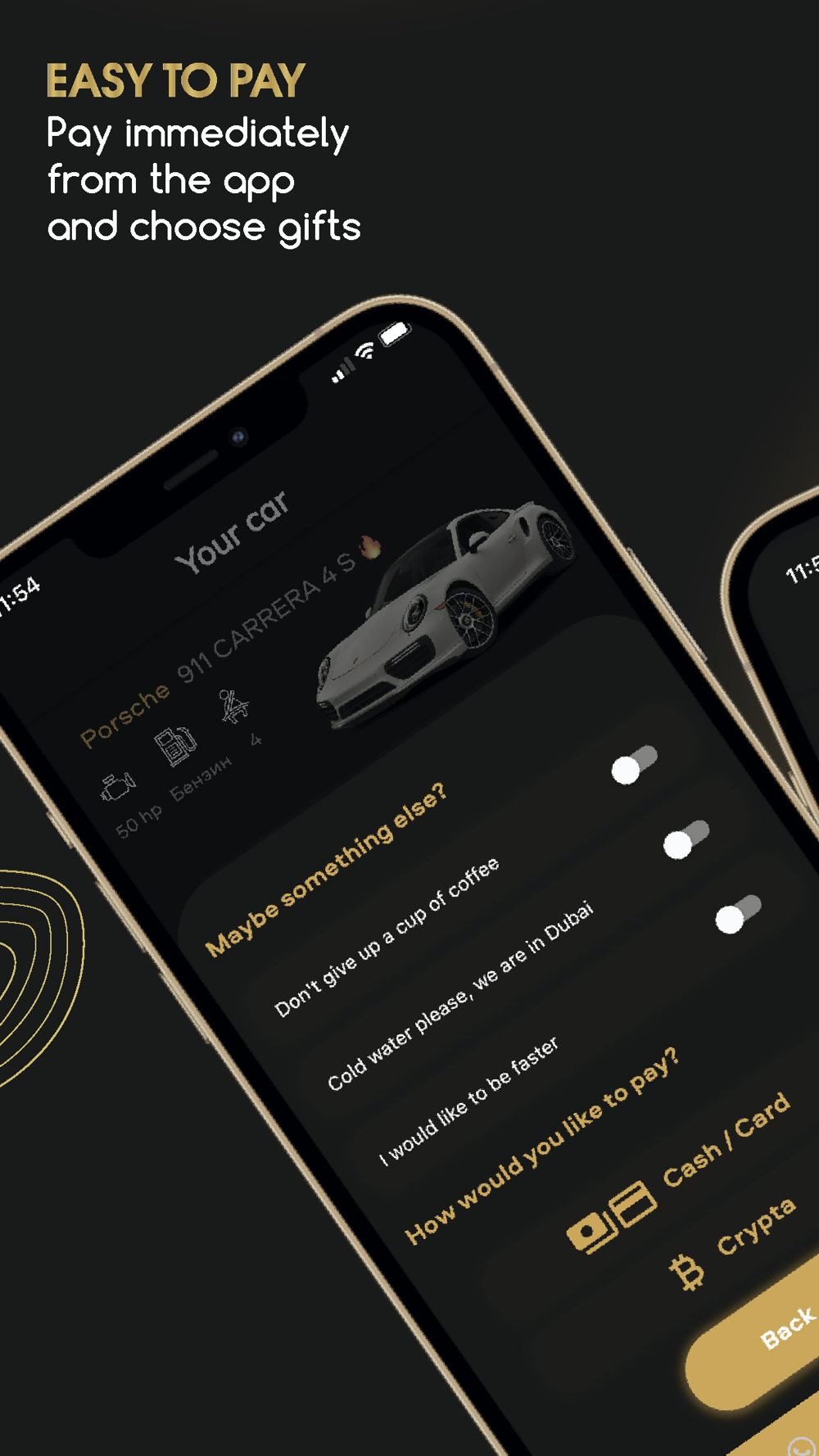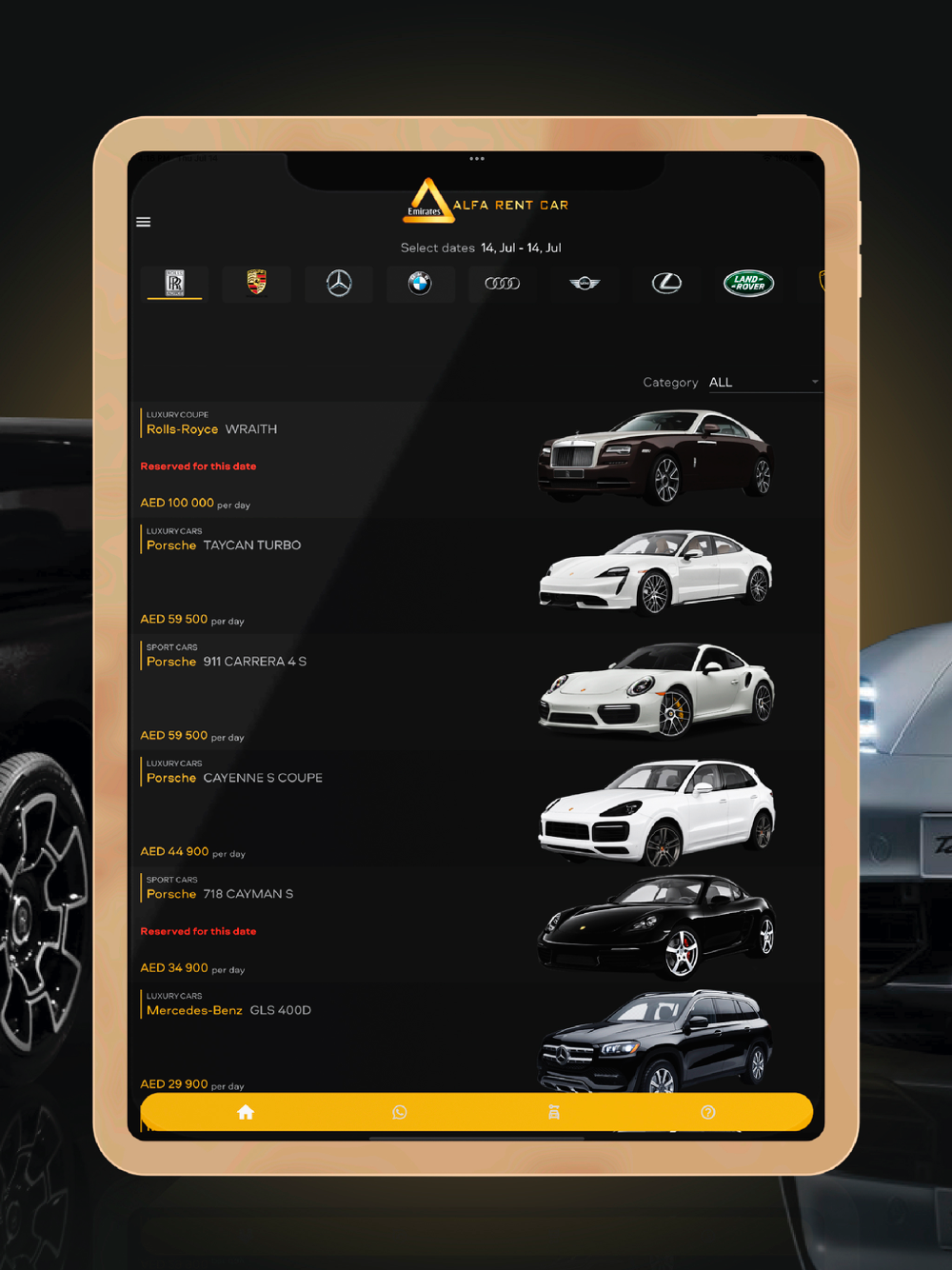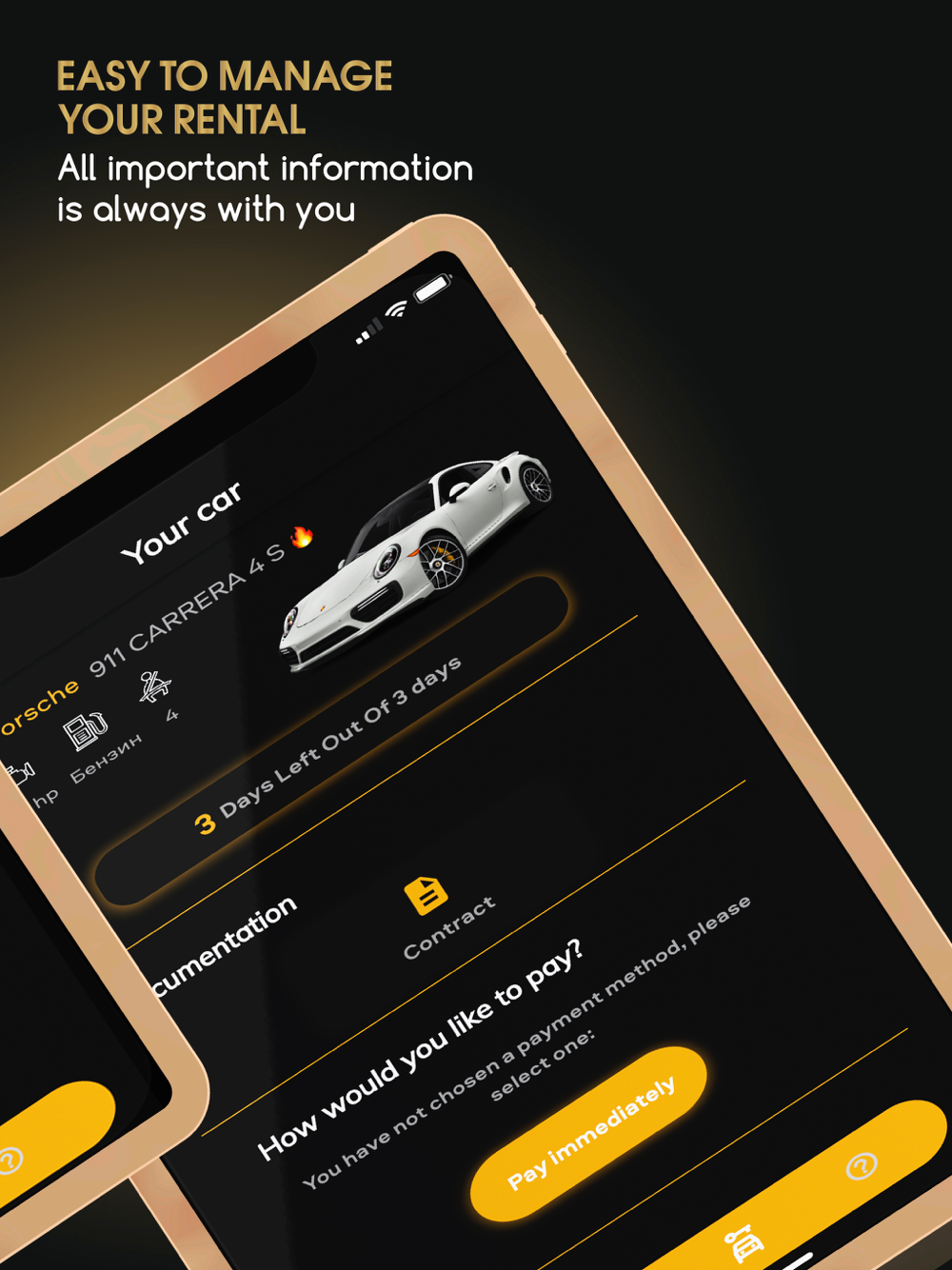 In the Alfa Rent Car app, it's even easier to arrange a short-term or long-term car rental. Just download the application, go through a small registration and use the car. For simplicity and convenience of renting a car you like, we have developed a number of additional options, a personal driver, cold drinks, electronic contracts, car delivery to any place convenient for you.