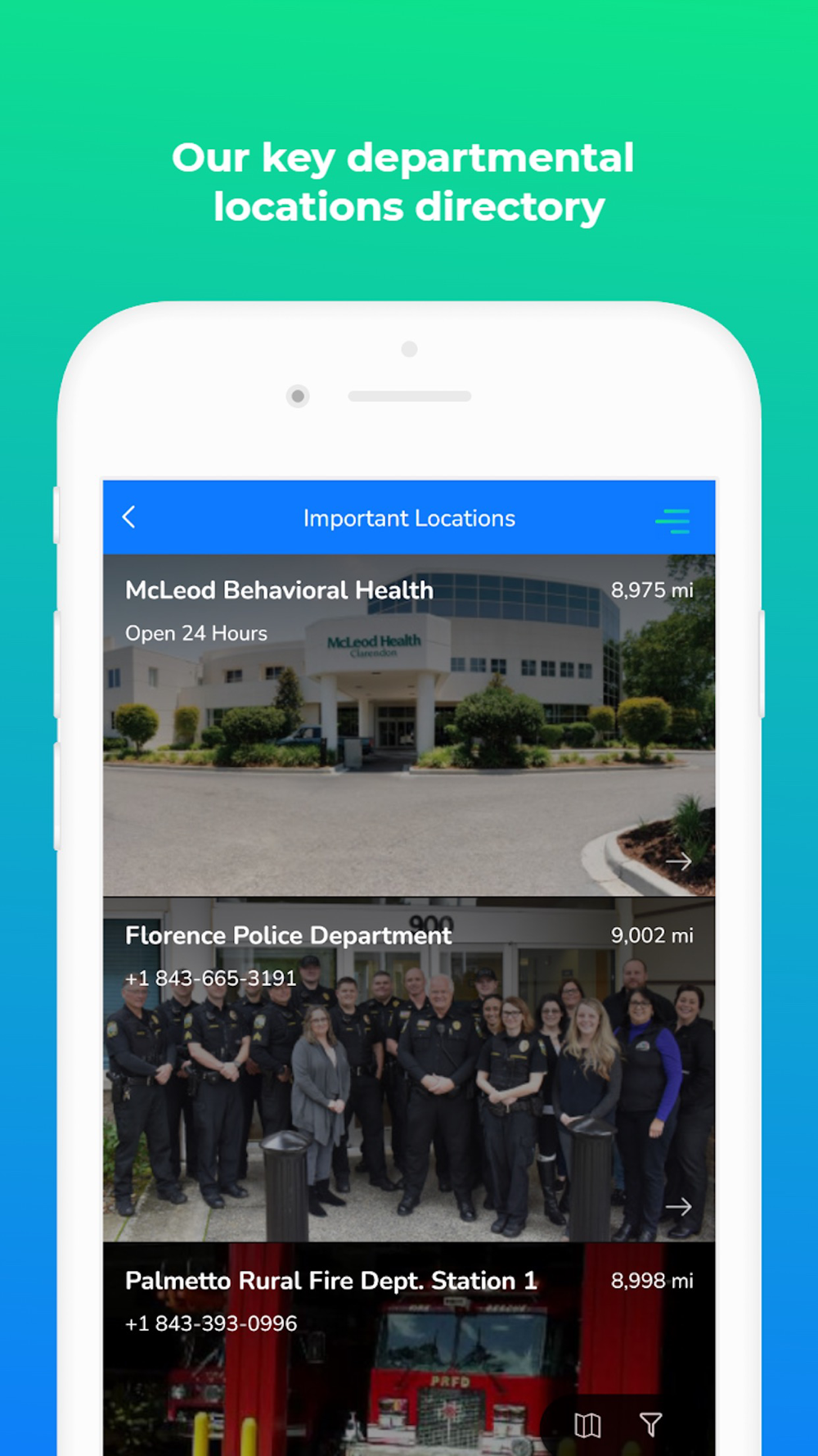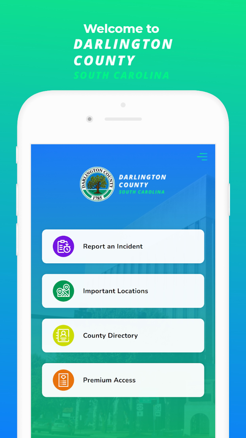 The app allows Darlington County engagement with citizens/taxpayers for reporting of common issues, access to directory of county departments or services, and enrollment of taxpayers for premium access to receive additional beneficial notifications and participate in preplan emergency information on a taxpayer property.