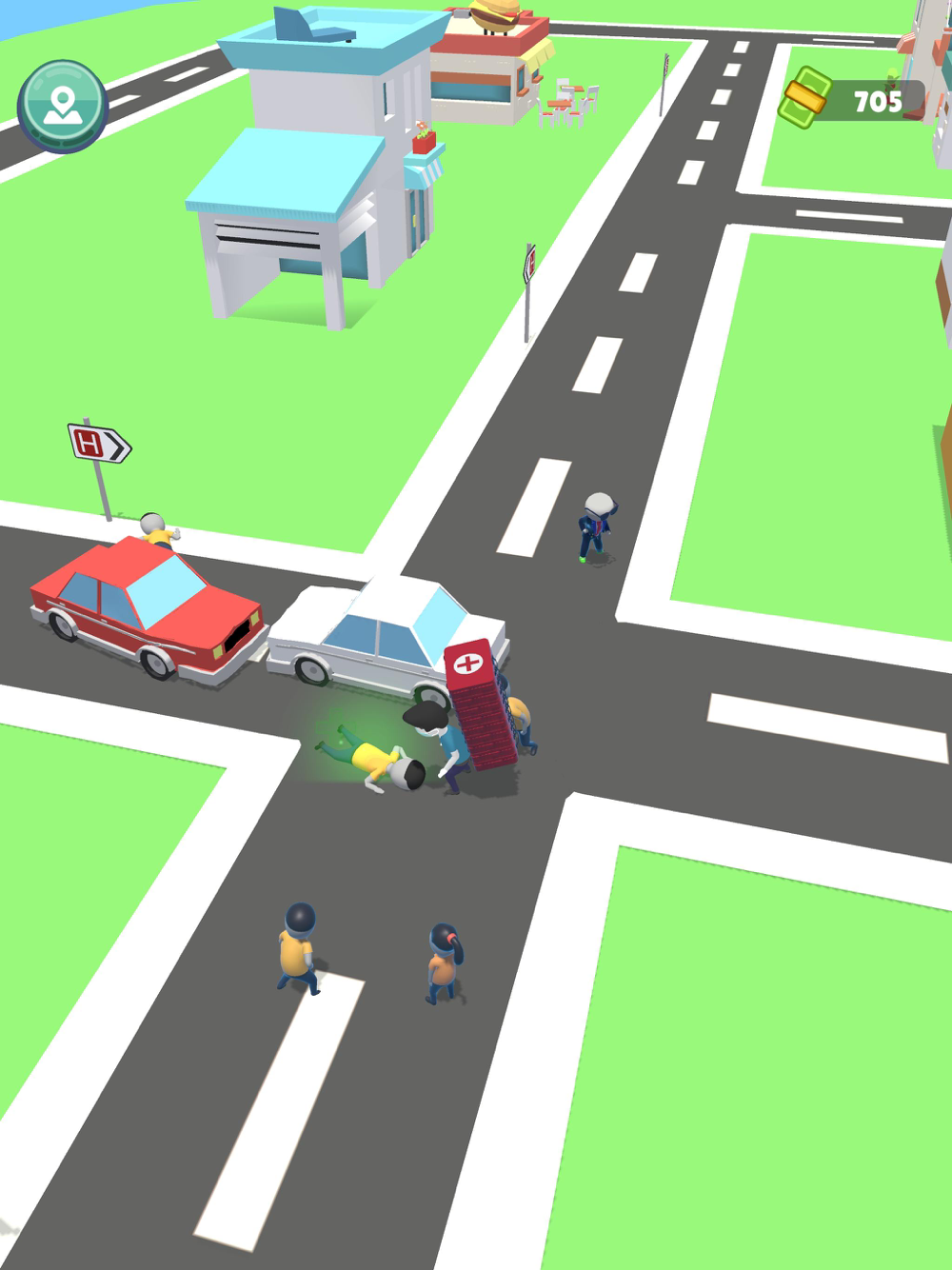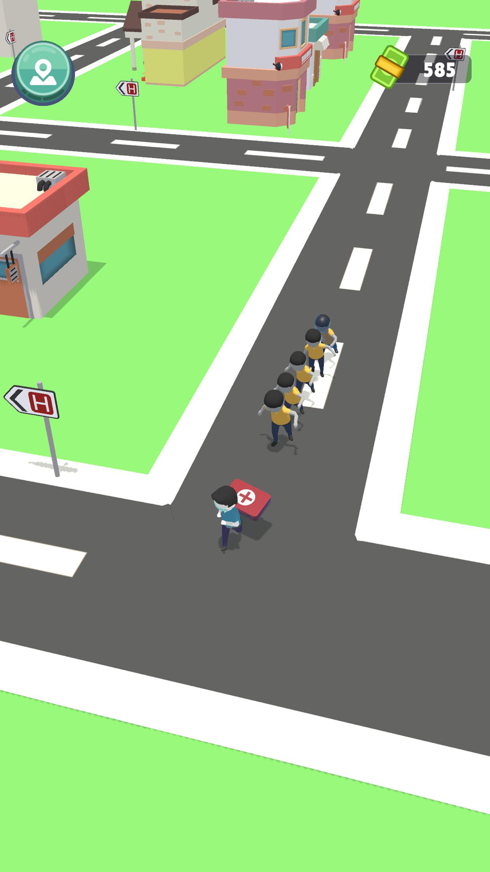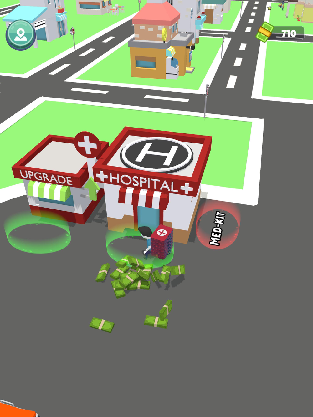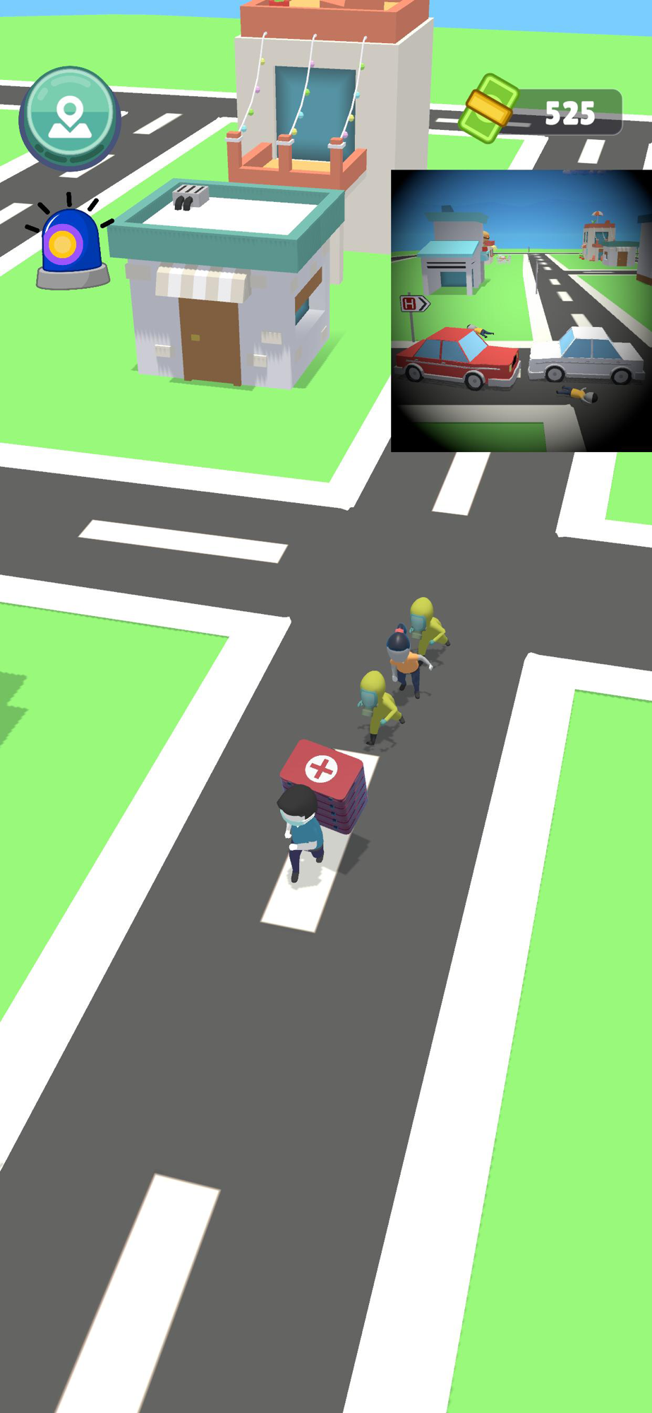 You need to grab your medical kit, rush to the injured citizens, perform the first aid and then get them to the hospital. Don't forget to bring as many medical kits as the number of injured people. You can upgrade your capacity as you save more lives.