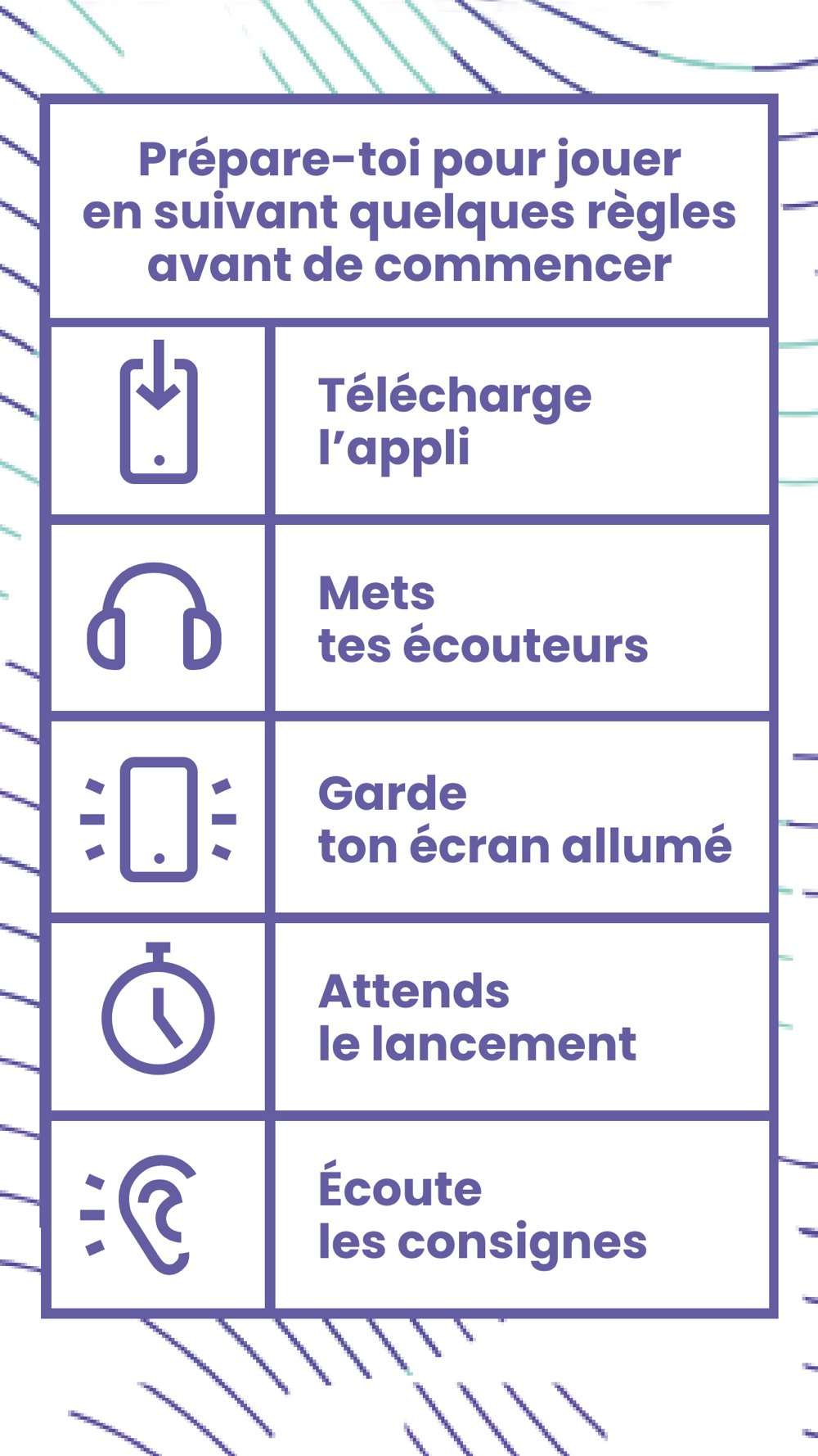 The player's actions are interpreted by the mobile, to assess their impact on the current situation. Physical engagement and creativity of the participants are stimulated by the musical interaction and the soundscape. New kinetic and relational dimensions emerge thanks to the intimate relationship between movement and music. Players who manage to get out of the maze go in search of those who are still stuck to form duos. A collective finale allows you to relive the highlights of this epic.