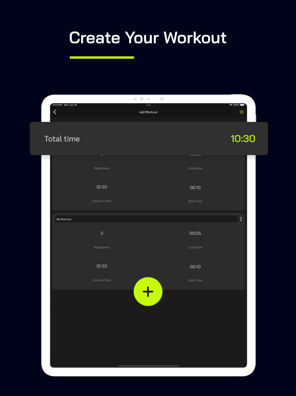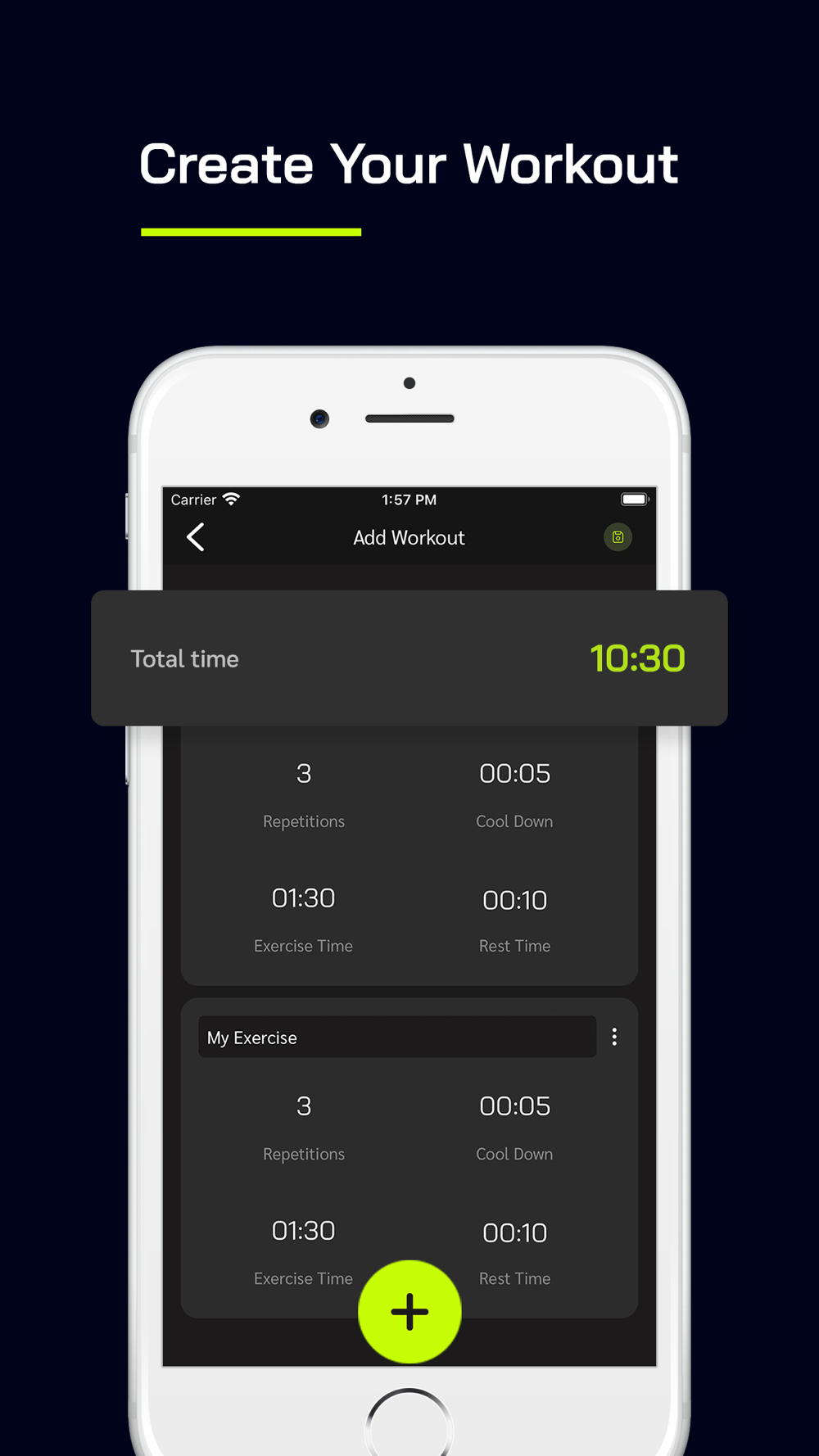This interval timer makes it easy to create your custom workout routines. You can add as many exercises for routine workout and number of sets, set time, countdown time, rest time.
