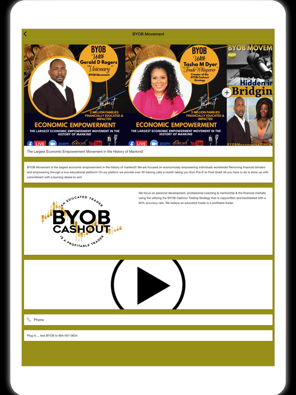BYOB is a worldwide movement for everyone who wants to control their financial destiny. We specifically focus on Economic Empowerment by bridging the economic gap. We are teaching you a skillset that will create generational wealth!