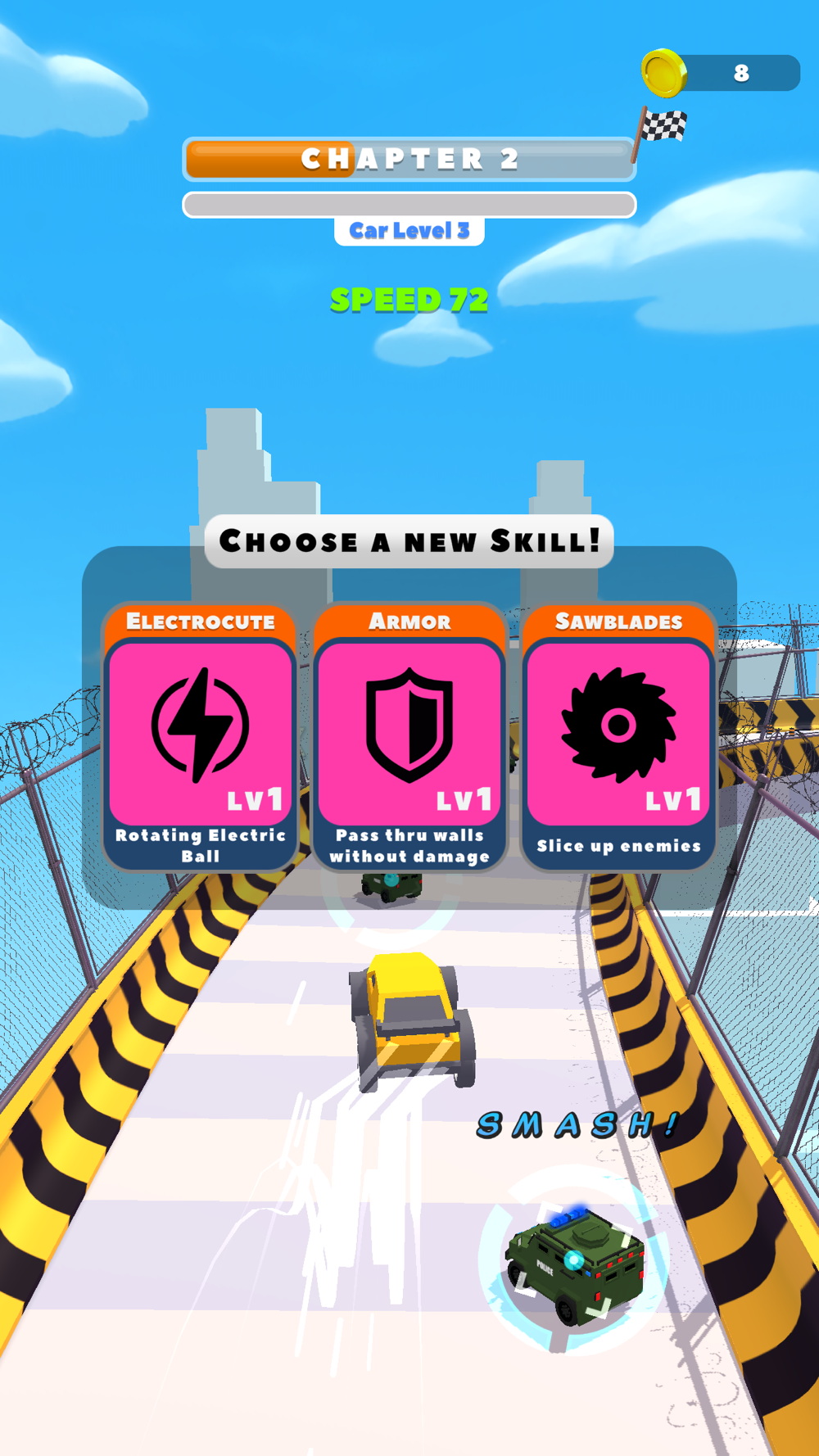 Use your indestructible vehicle as a weapon to ram and destroy all baddies!
