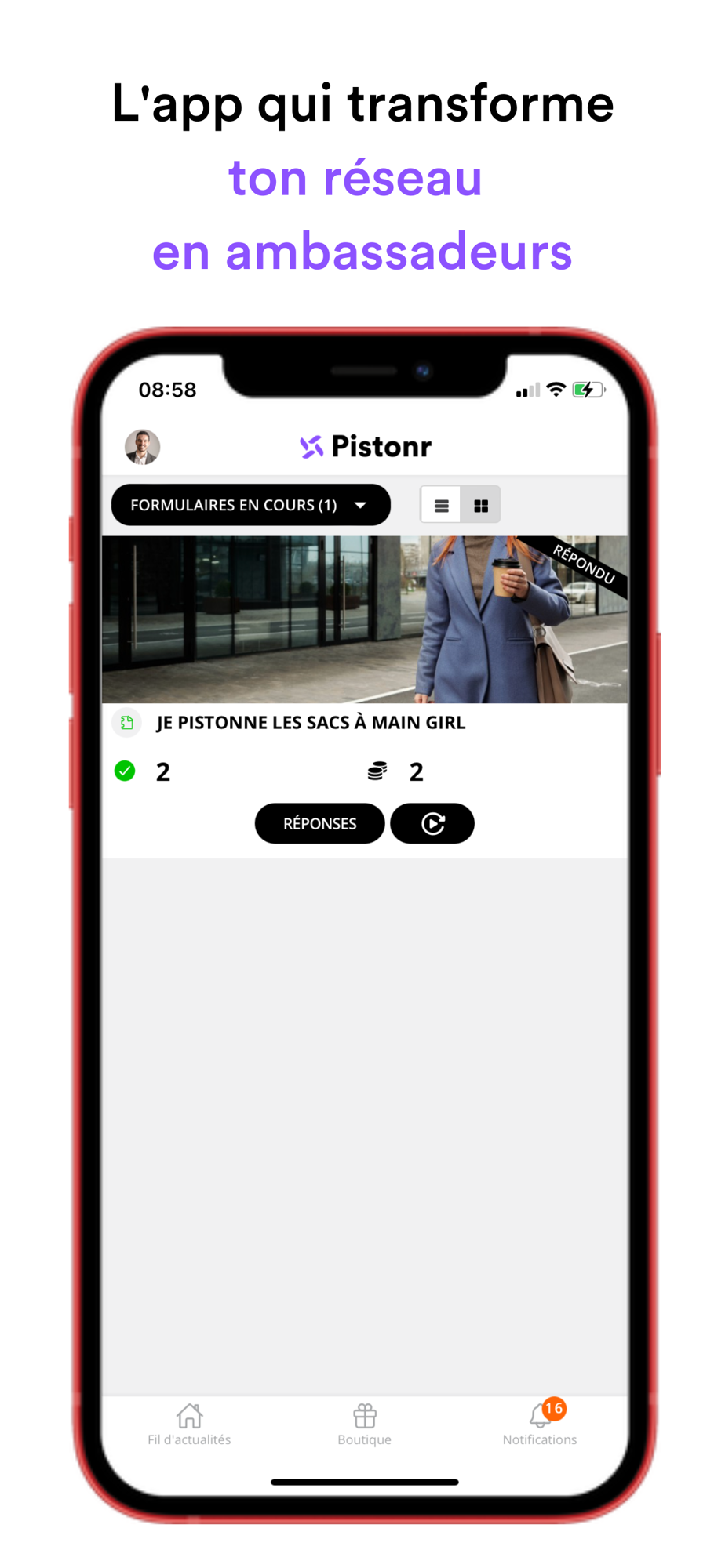 PistonR est l’application idéale de parrainage pour les entreprises qui veulent transformer leur réseau en Ambassadeurs de leur marque.