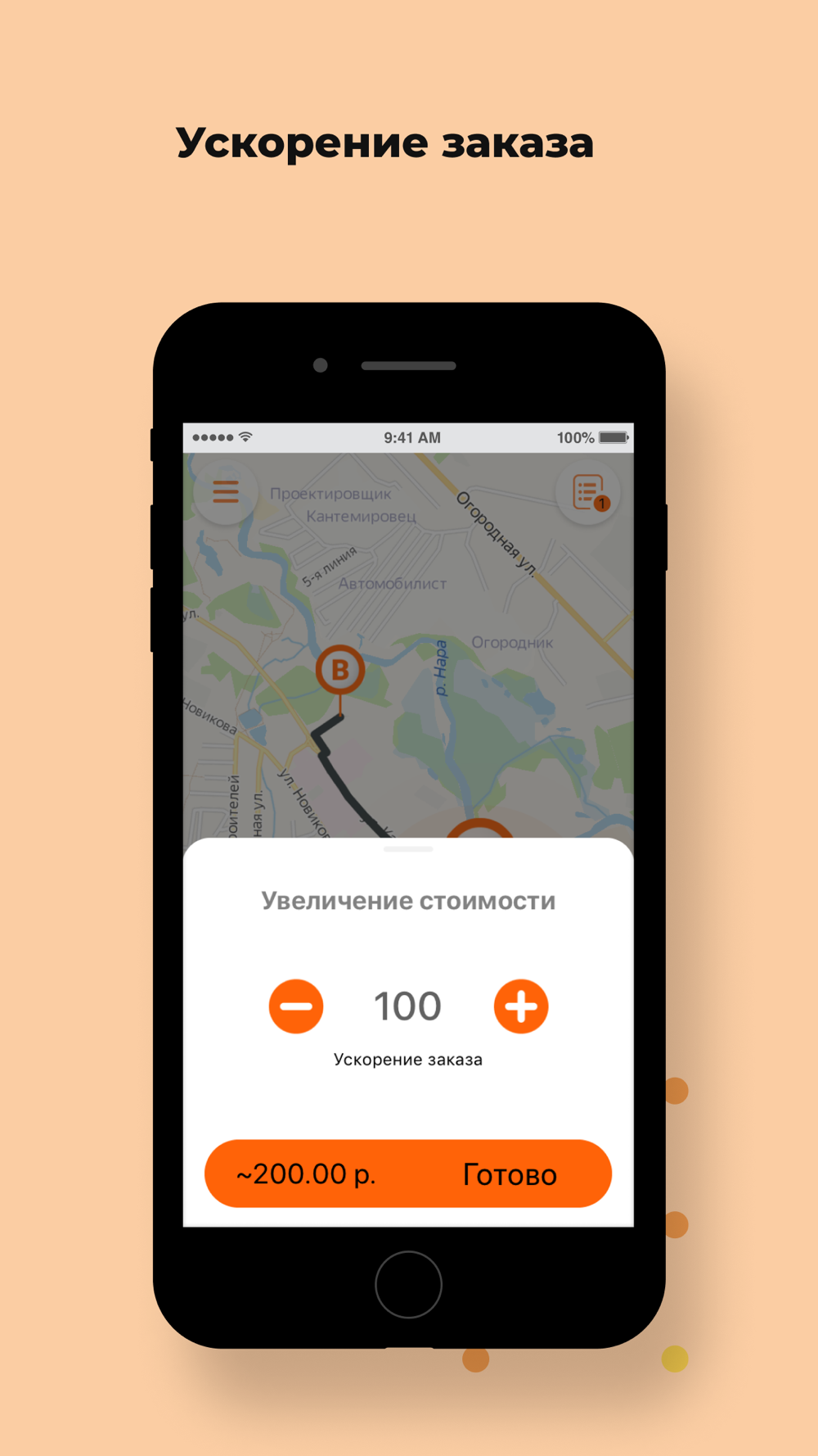 Откройте приложение, укажите адрес и закажите такси, нажав на одну кнопку.