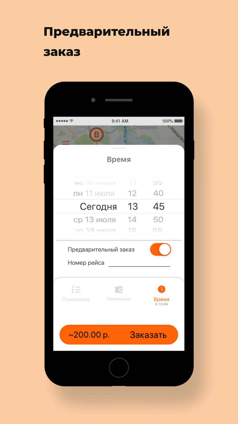 Нужен автомобиль к определенным времени и дате? Закажите его заранее через приложение, и в назначенное время такси будет ждать вас у подъезда.