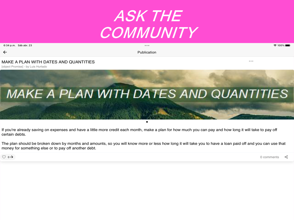 In addition, with our coach, you will receive financial advice every week, where we will show you the best ways to carry out a budget planner and money control, you will never be alone, because in each advice you can write your doubts to the entire financial community who, like you, improves his personal finances every day, these tips, if you wish, you can share them on your social networks, they will keep you motivated and will teach you the best personal finance strategies.