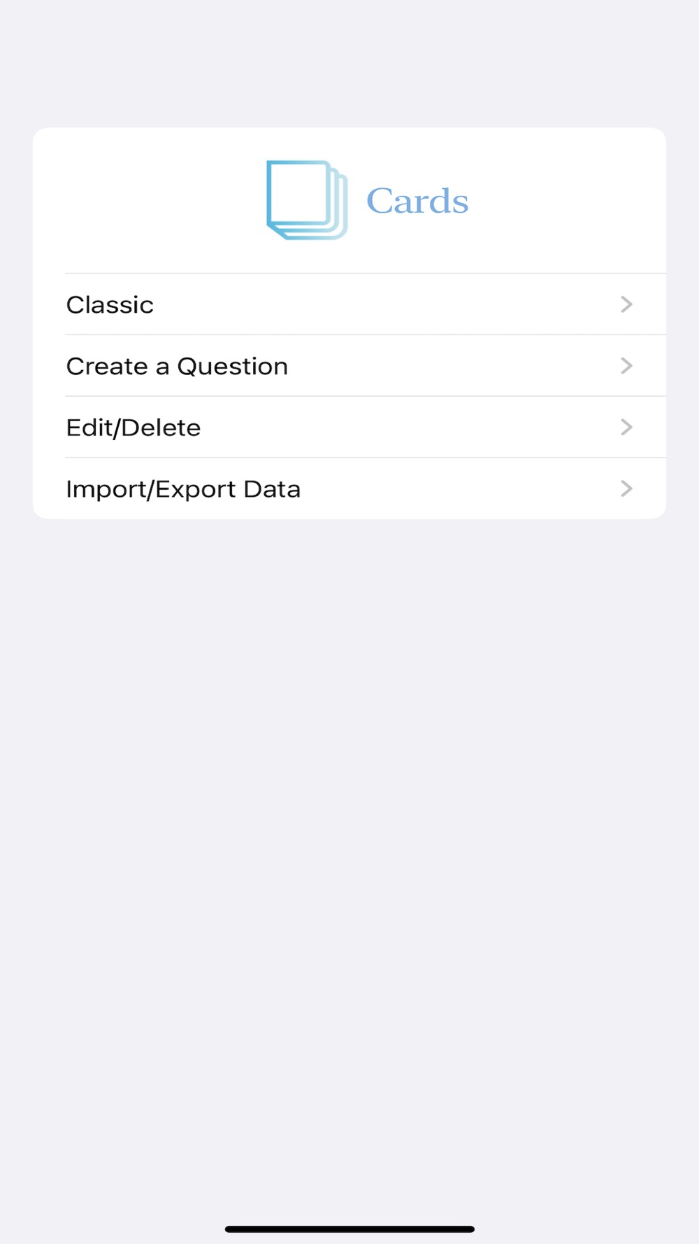 Cards is an app for those who want to improve their performance in retention the information that they study. In Cards, you can create a collection of questions to be answered wherever you are and whenever you want with practicality and simplicity. Cards uses your success rate in each question to determine the probability that this question returns in order to turn your points of weakness into a consistent and solid knowledge.