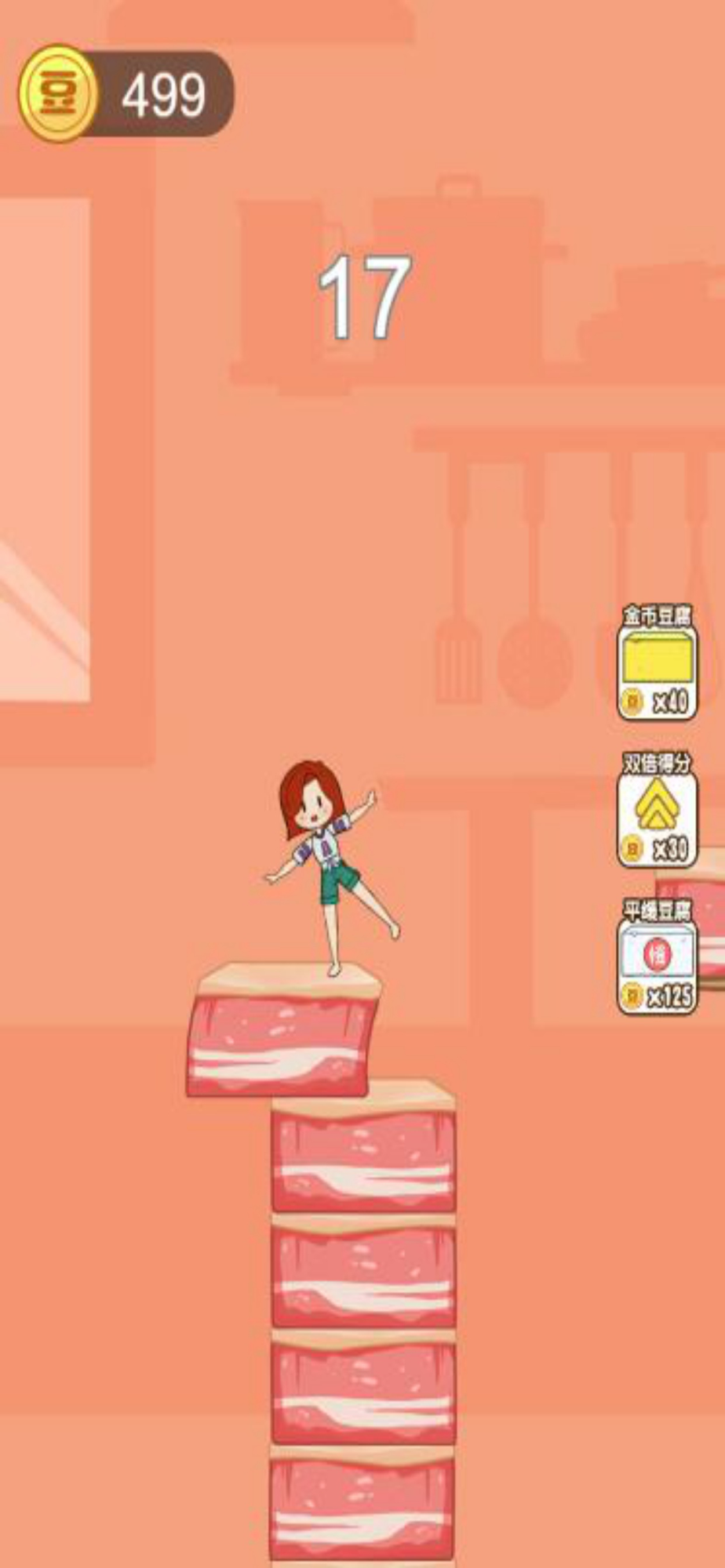 一款好玩的跳跃闯关游戏,控制小女孩在豆腐上轻轻起跳,跳过各种困难和障碍,最终通过挑战到达终点,而且在游戏中,玩家需要帮助小女孩完成各种困难的任务,试着让小女孩创造各种各样的新记录,但是要注意要保证好平衡感。
