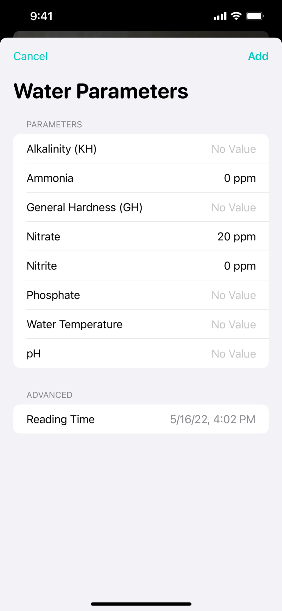 - Keep track of water parameters: after taking measurements, add a special Water Parameter entry in the journals and note all the values.