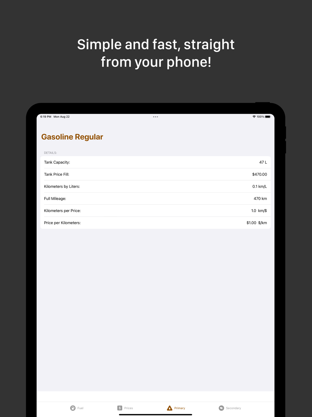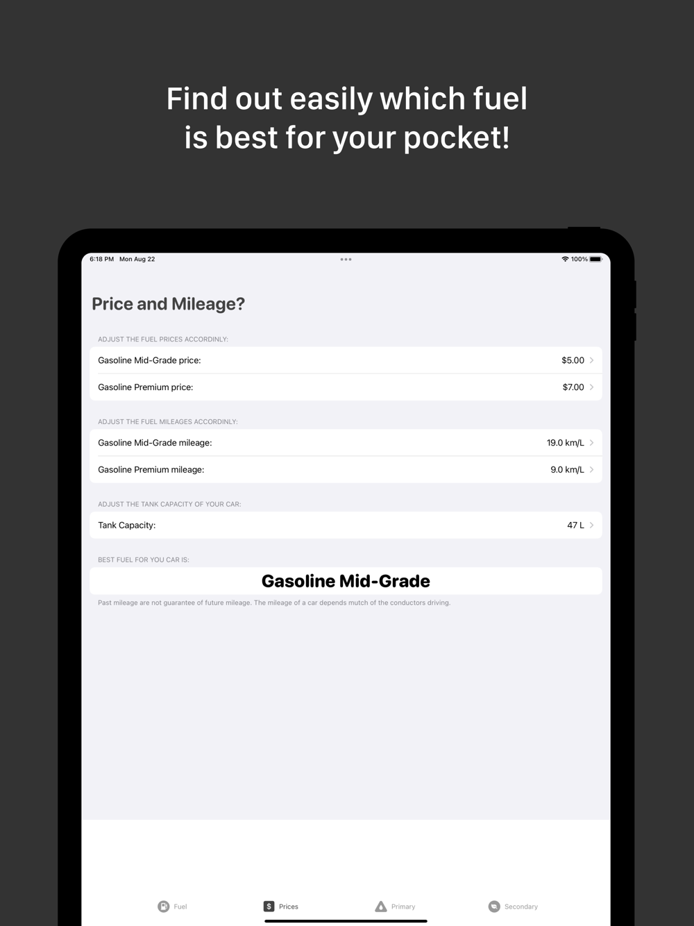 * Find out easily which fuel is best for your pocket!
