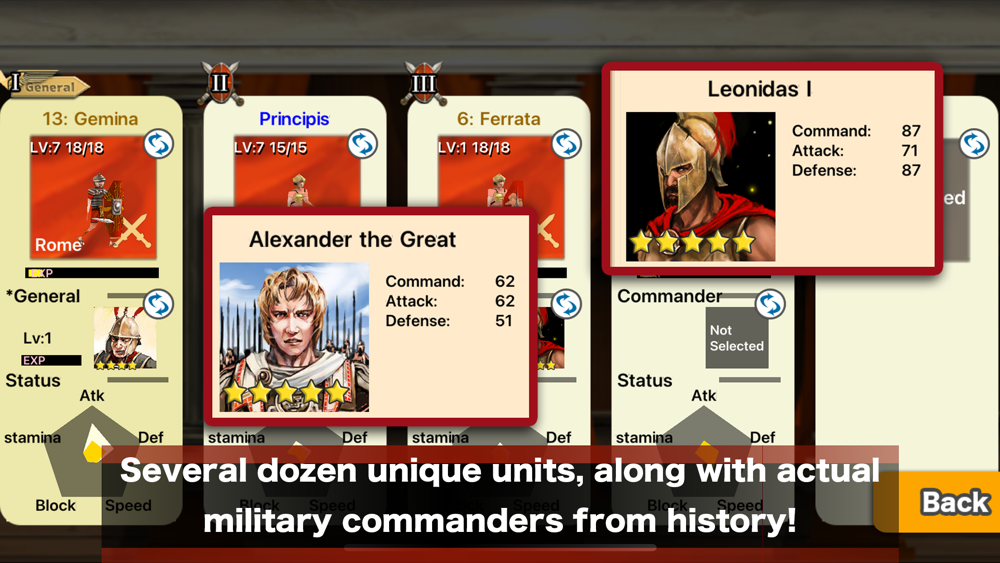 Several dozen unique units (swordsman, spearman, etc), along with actual military commanders from history!
