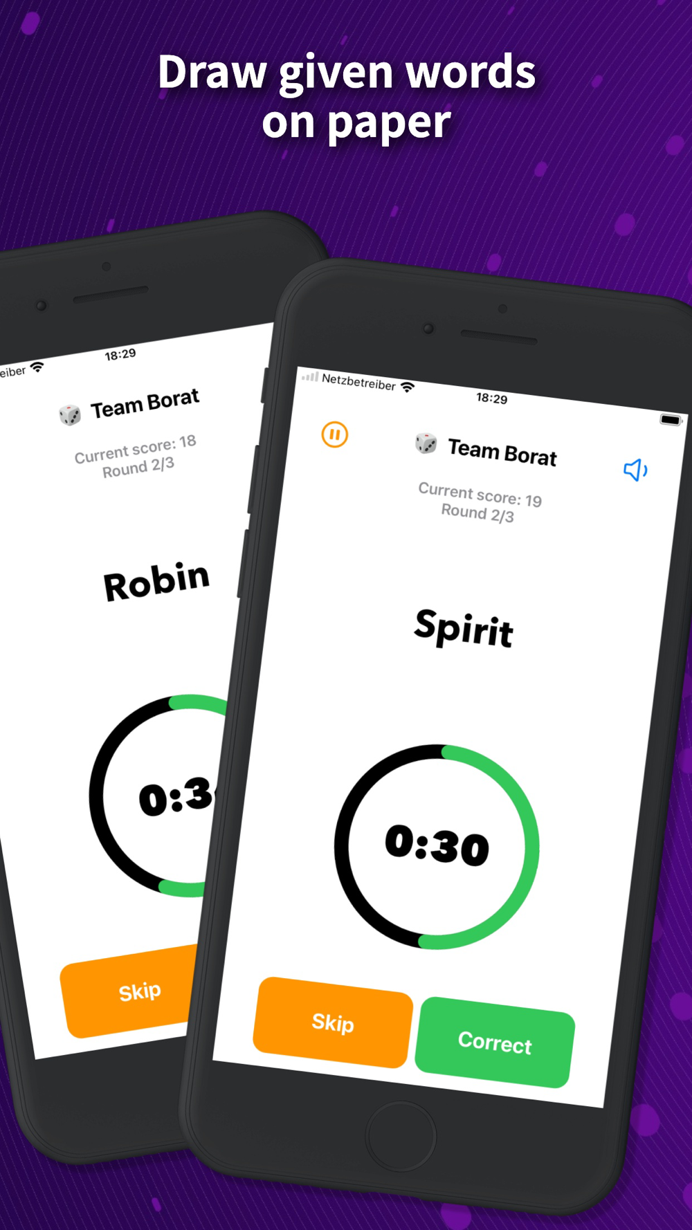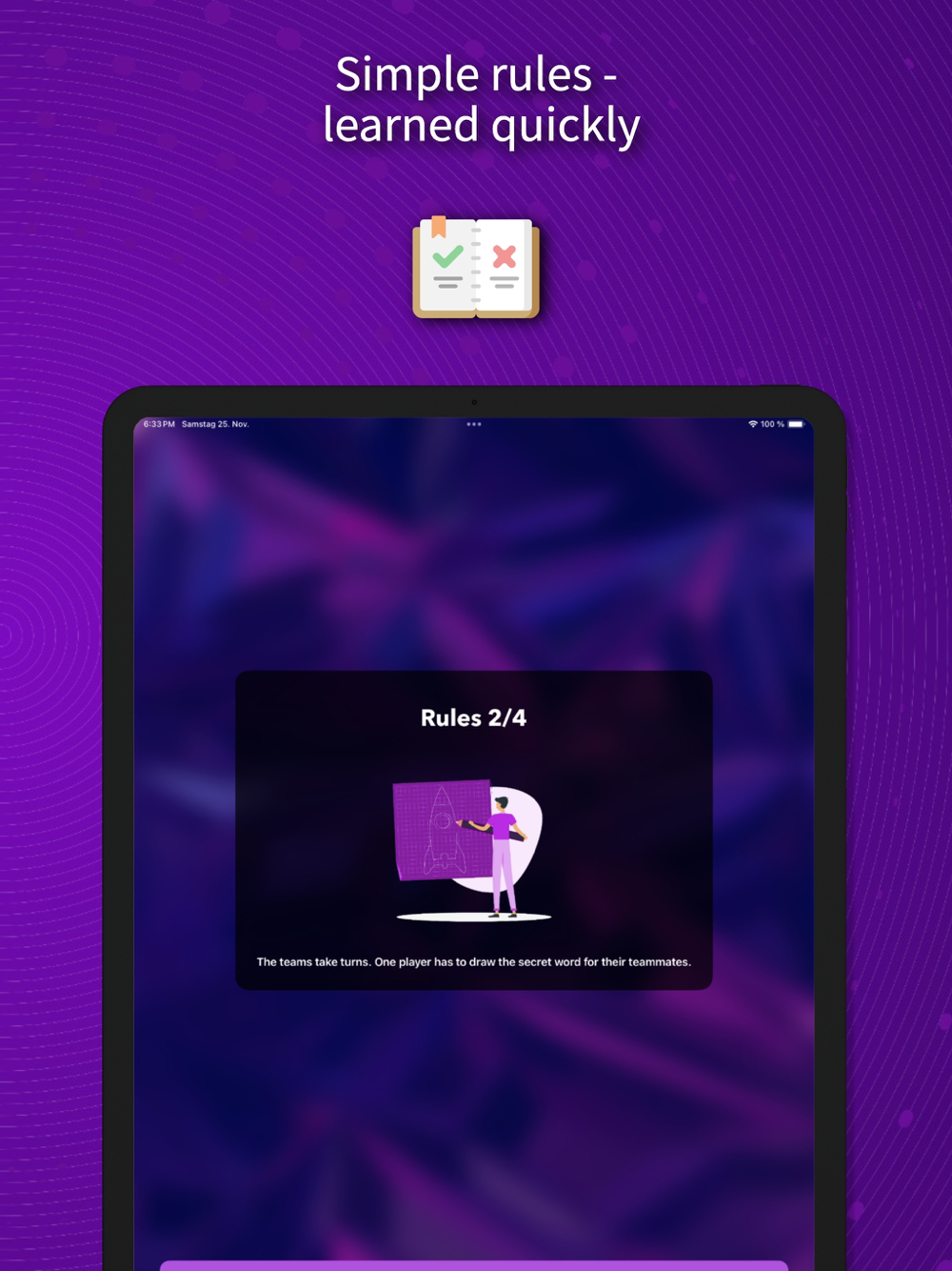 One player sketches a random word while the team races to guess it as quickly as possible. Time is of the essence, making speed the key to success! The more words guessed, the higher the team's score.