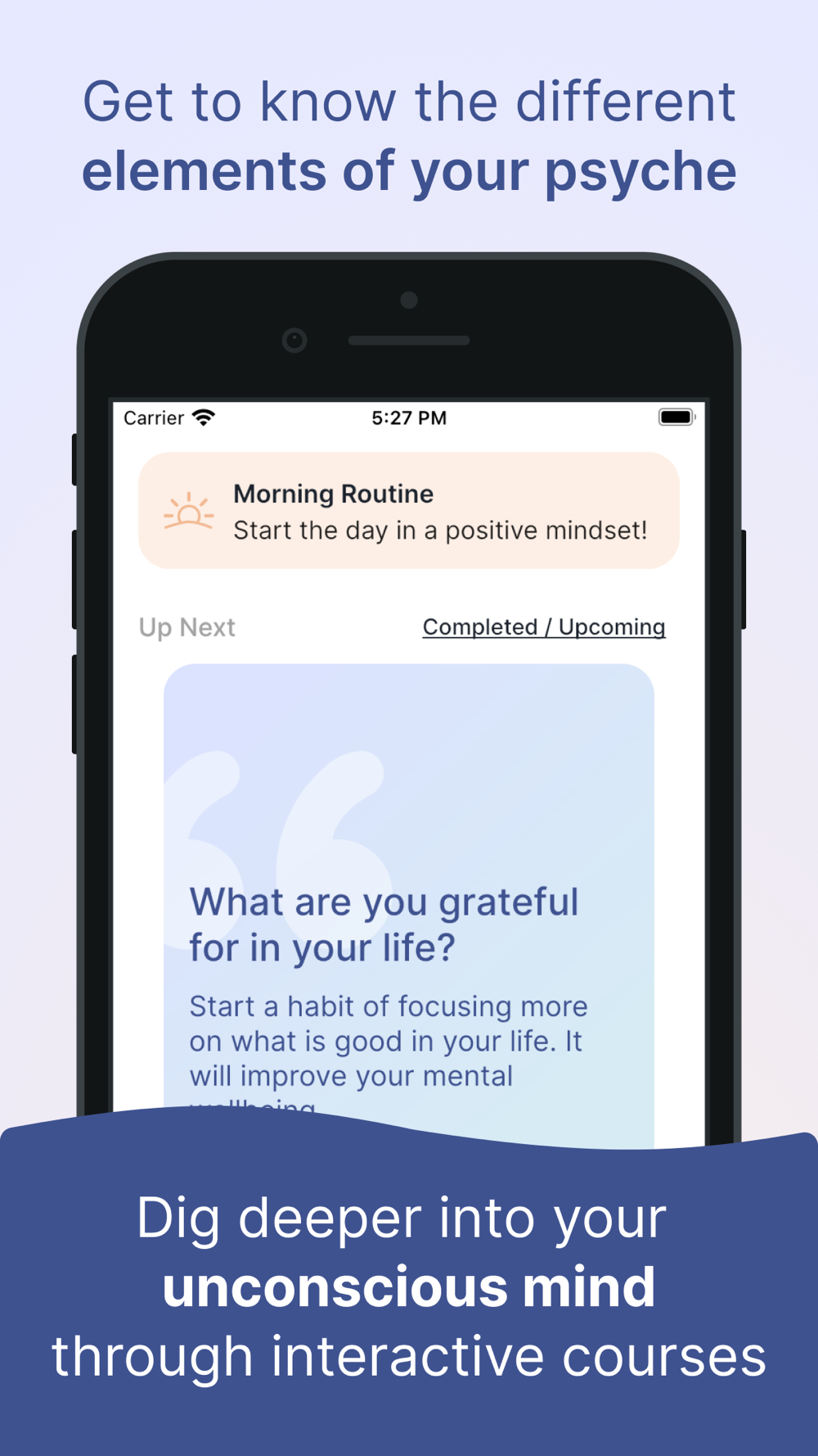 The Me App is all about enabling you to dig deeper into your mind. The root causes for most of our problems lie in the unconscious parts of our minds. They are beliefs and emotions that emerged from experiences in our past and they inform our current perception, behavior and well-being without us being aware of them.