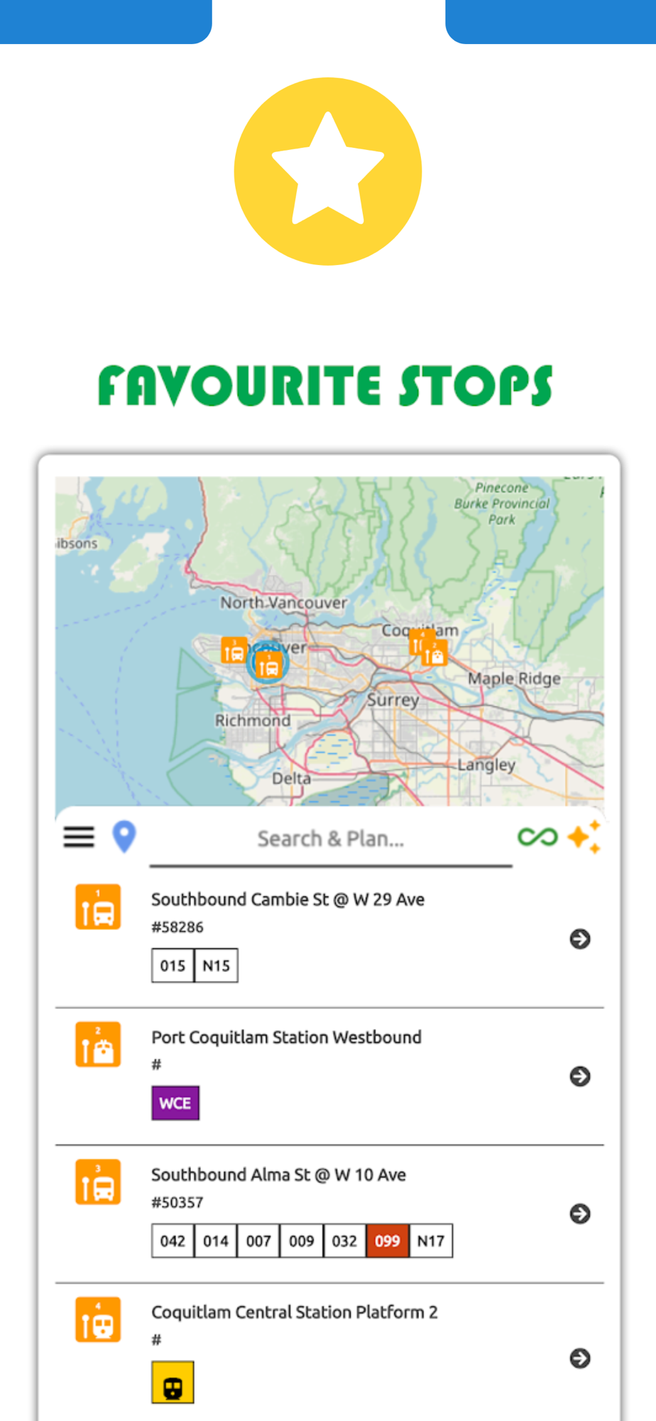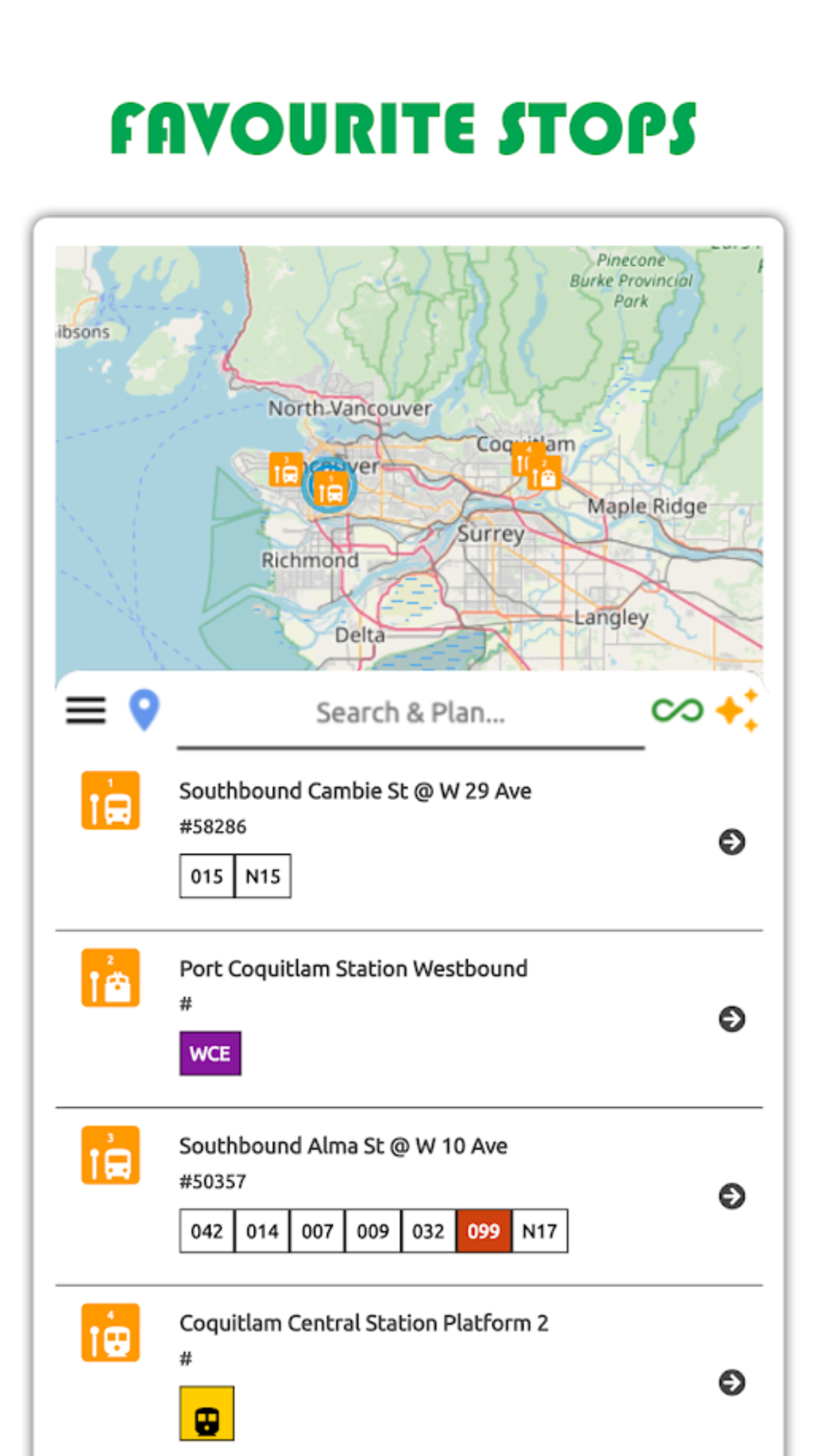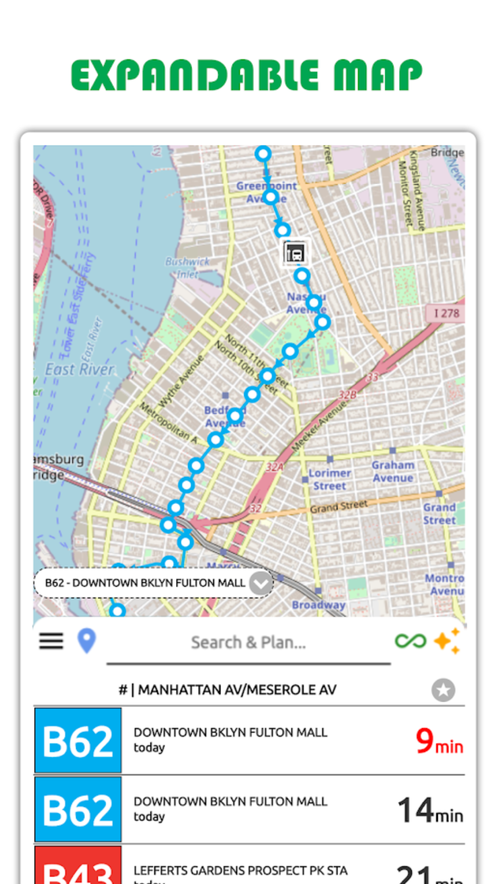 - Transit routes are available on the map along with the transit vehicle driving direction.