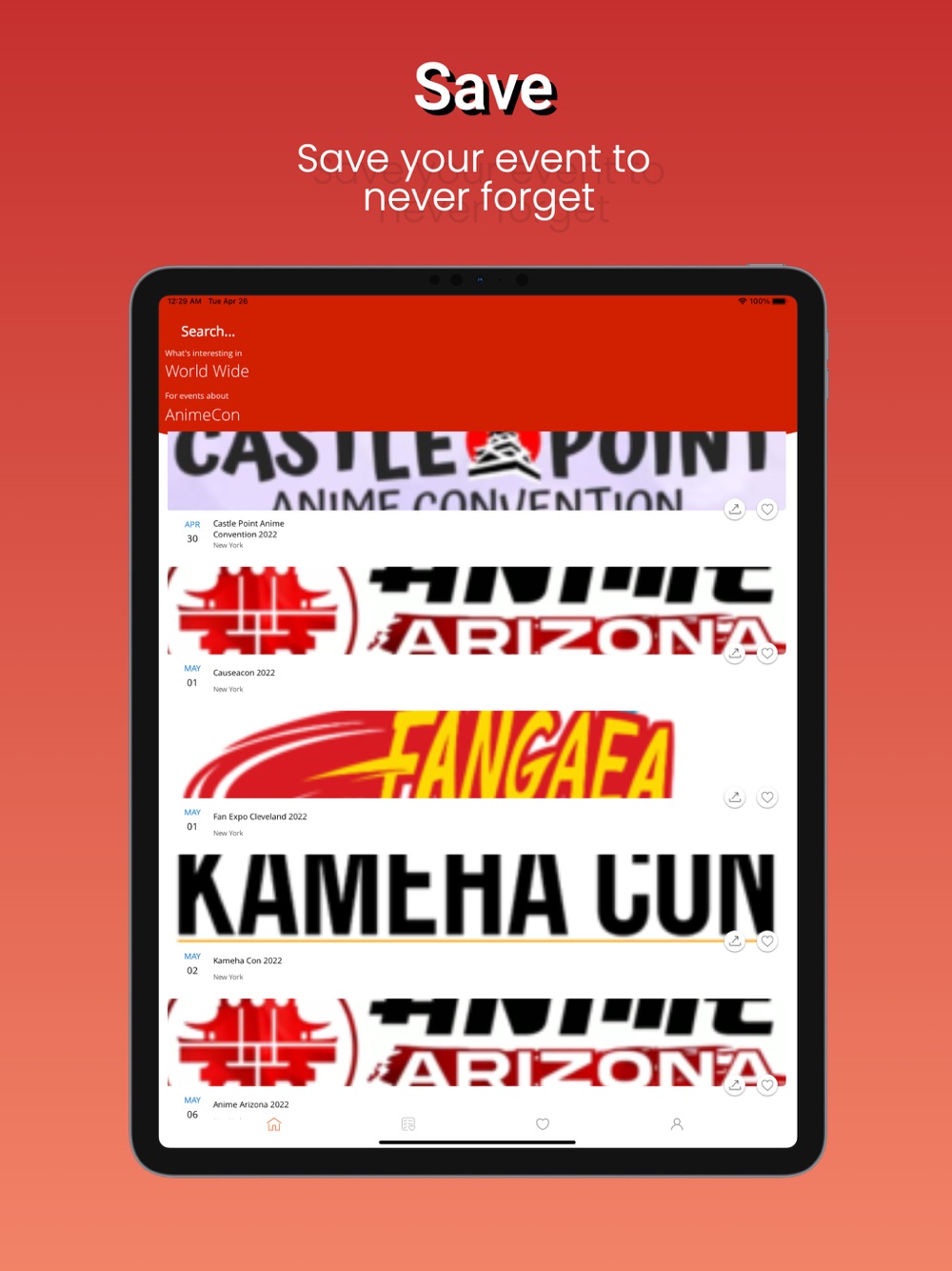 - Save your events