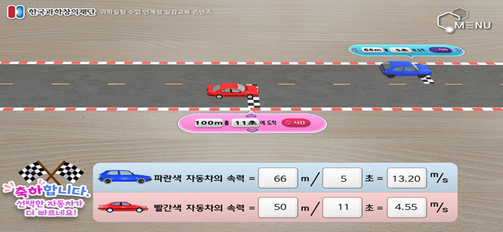 ㆍ 좁은 실내에서는 확인하기 어려운 속력 운동을 AR 콘텐츠를 통해서 실감나게 체험해 보세요.