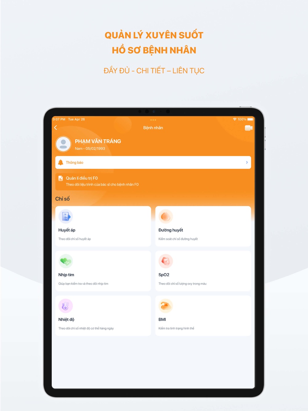 - Quản lý, theo dõi và điều trị bệnh mãn tính thông qua các chỉ số, biểu đồ do bệnh nhân cập nhật; từ đó bác sĩ có thể can thiệp sớm, cảnh báo vượt ngưỡng nguy cơ cao cho bệnh nhân.